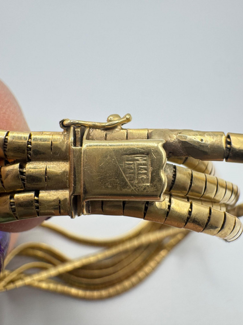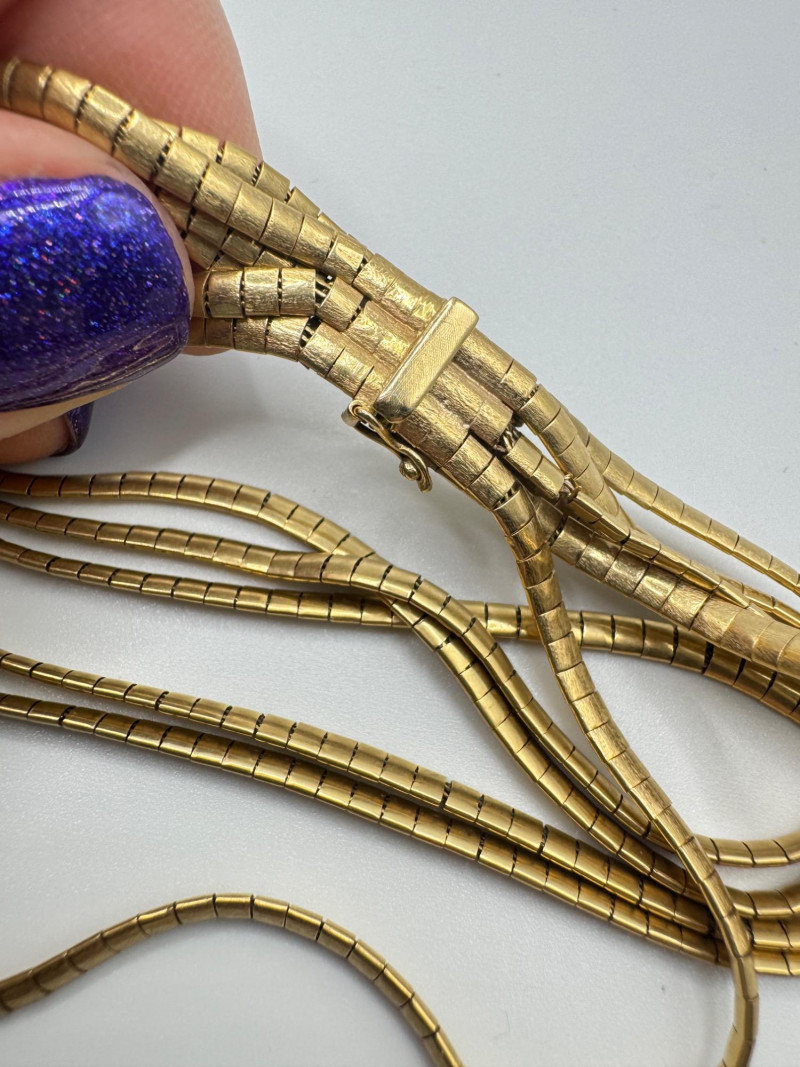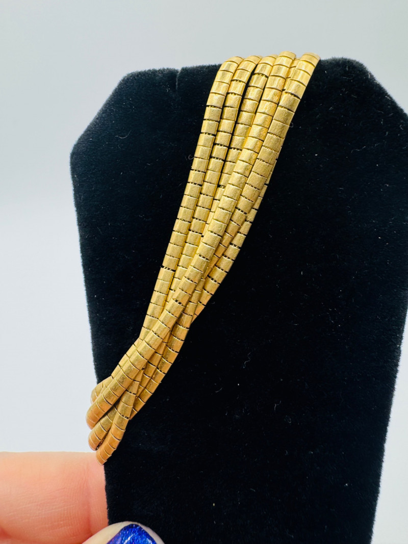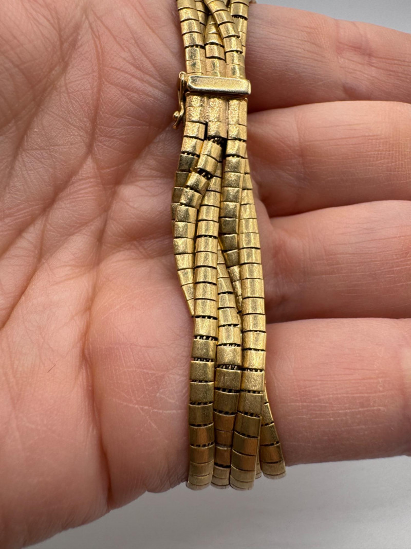 14K Gold 6-Rowed Wide Flexible Link Bracelet – 7.5” – 30.23g. Important Disclaimer: Acid tested at 14K, but not guaranteed. Sold as is—no guarantees on metal purity or gemstone authenticity. No refunds on these factors.
