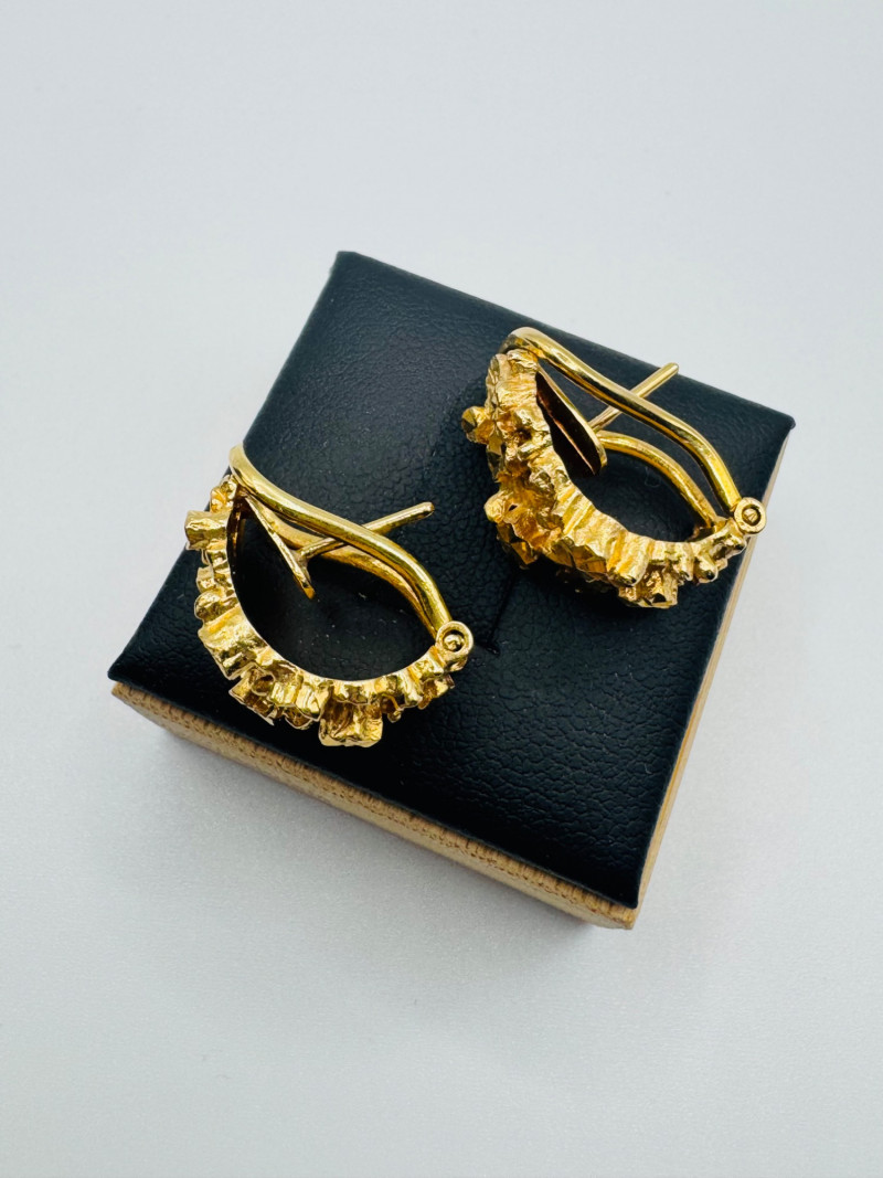 Lot # 34 - 14K Gold Nugget Textured Hoop Earrings – 10.35g