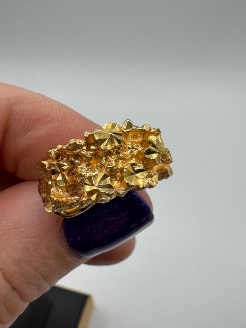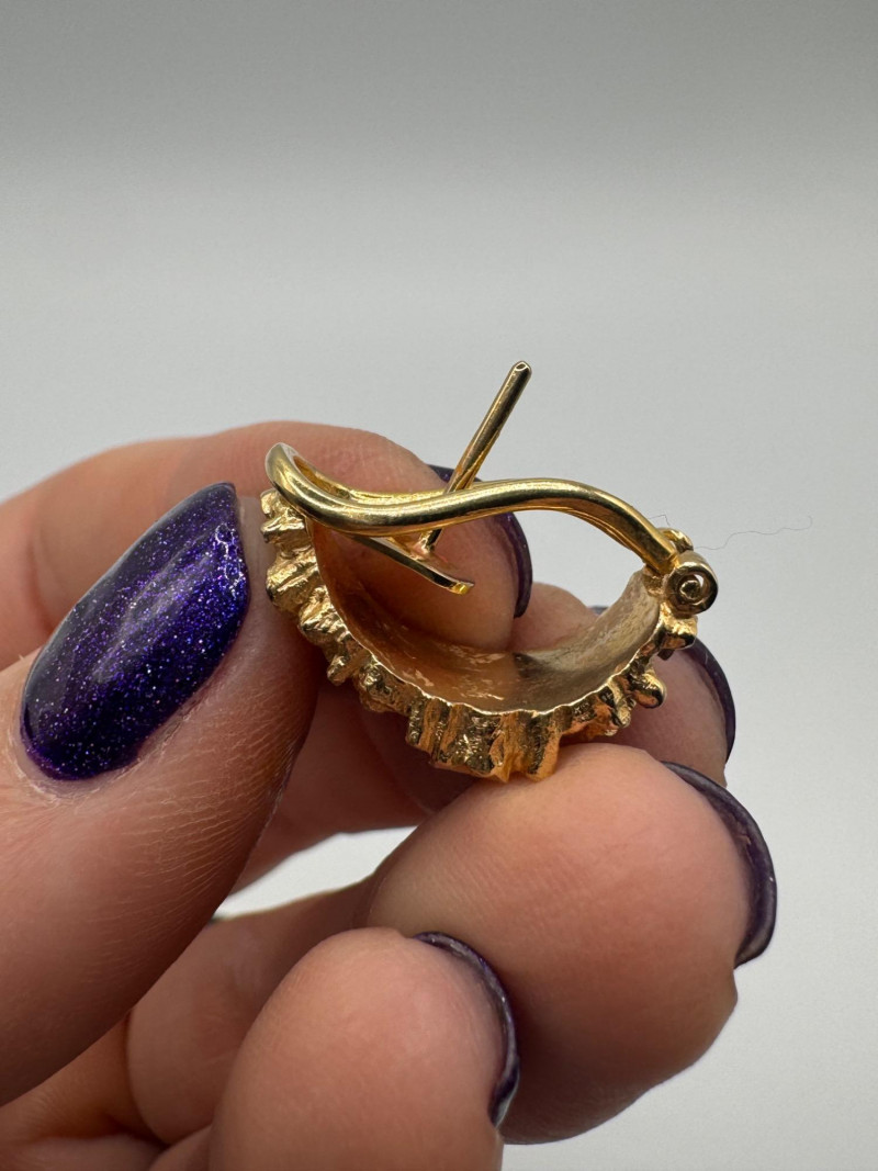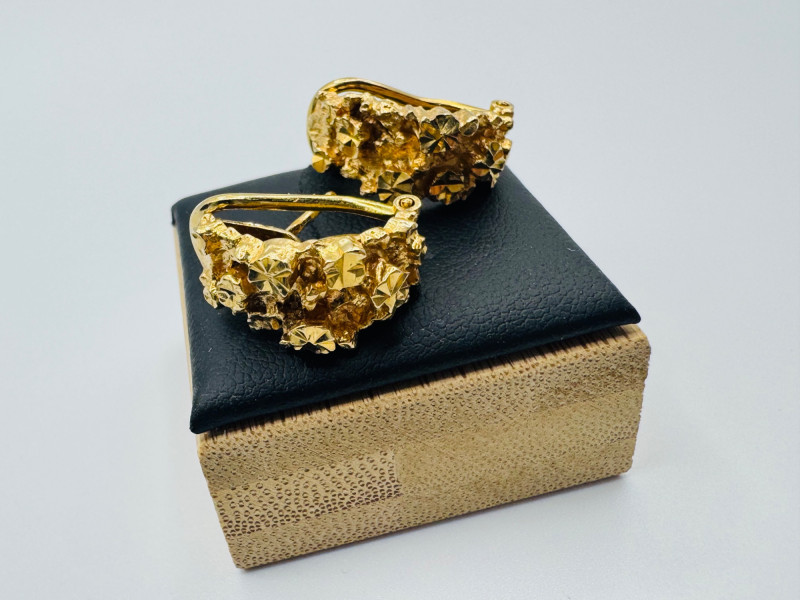 14K Gold Nugget Textured Hoop Earrings – 10.35g. Important Disclaimer: Jewelry in this lot has not been tested. By bidding, you agree to purchase as is, with no guarantees on metal purity, gemstone authenticity, or content. No refunds issued on these factors.