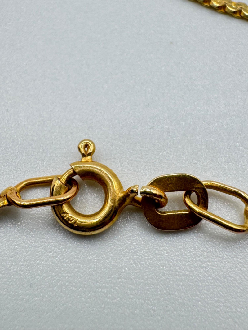 14K Gold Herringbone Chain Necklace – 28” Extra Long, 4.95g. Important Disclaimer: Jewelry in this lot has not been tested. By bidding, you agree to purchase as is, with no guarantees on metal purity, gemstone authenticity, or content. No refunds issued on these factors.