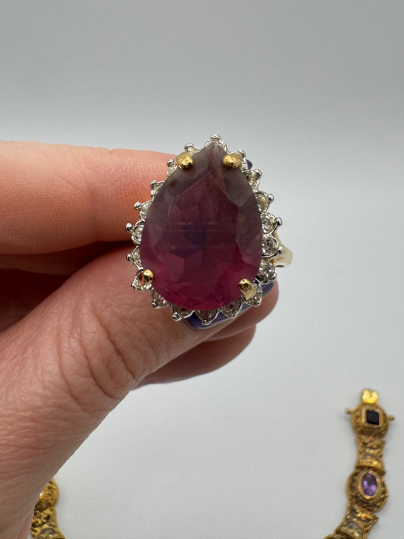 Lot # 43 - 925 Gold-Tone Bracelet w/ Gemstones + 18K Tear Drop Ring Size 9–10