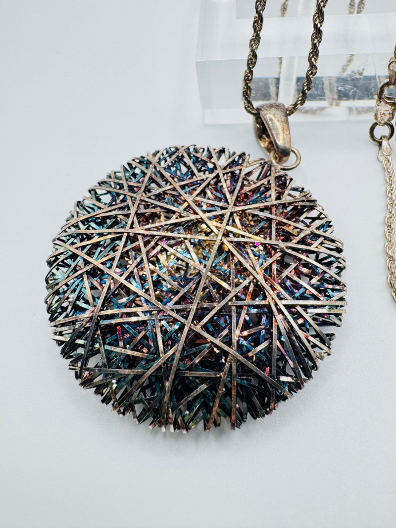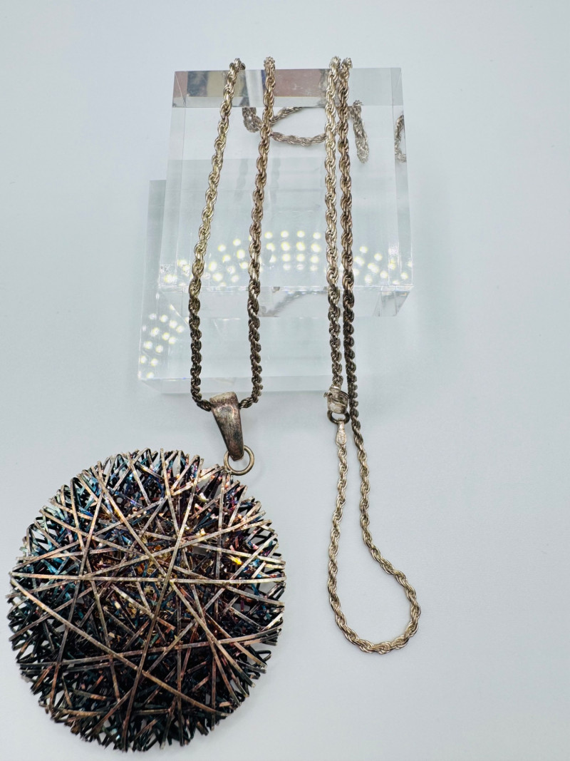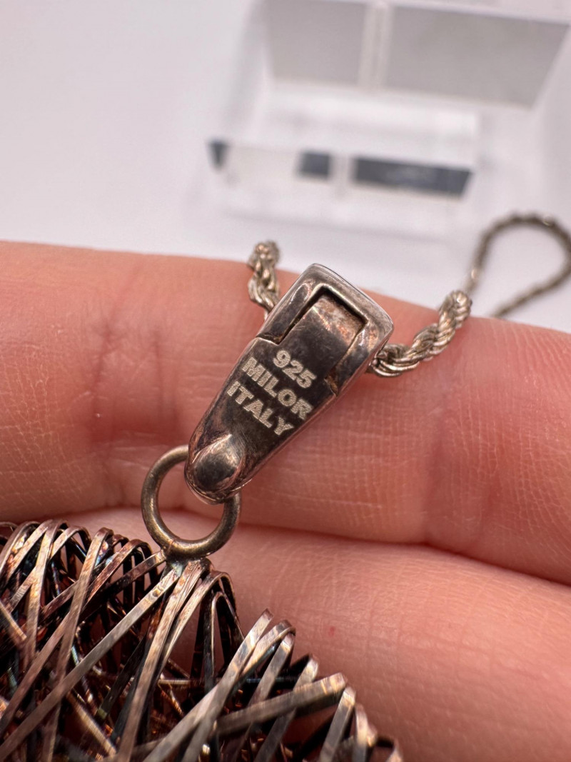 Milor Italy 925 Silver Wired Pendant w/ 23" Chain, 23g. Important Disclaimer: Jewelry in this lot has not been tested. By bidding, you agree to purchase as is, with no guarantees on metal purity, gemstone authenticity, or content. No refunds issued on these factors.