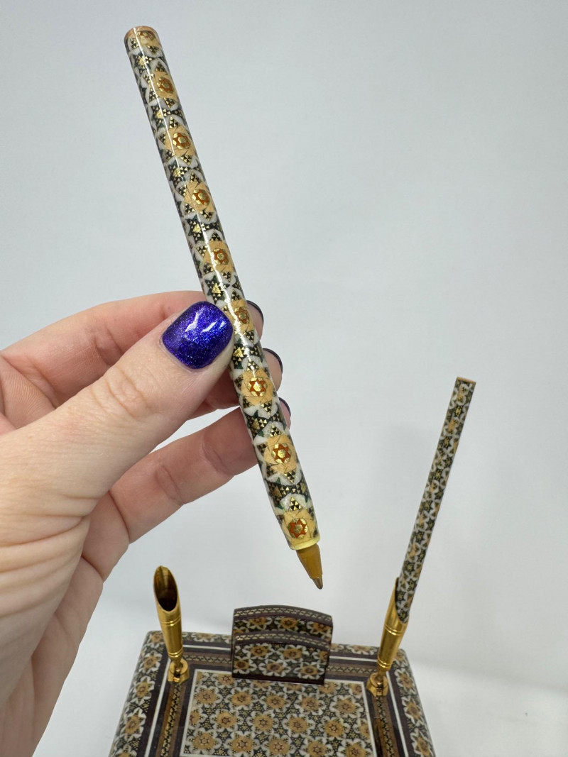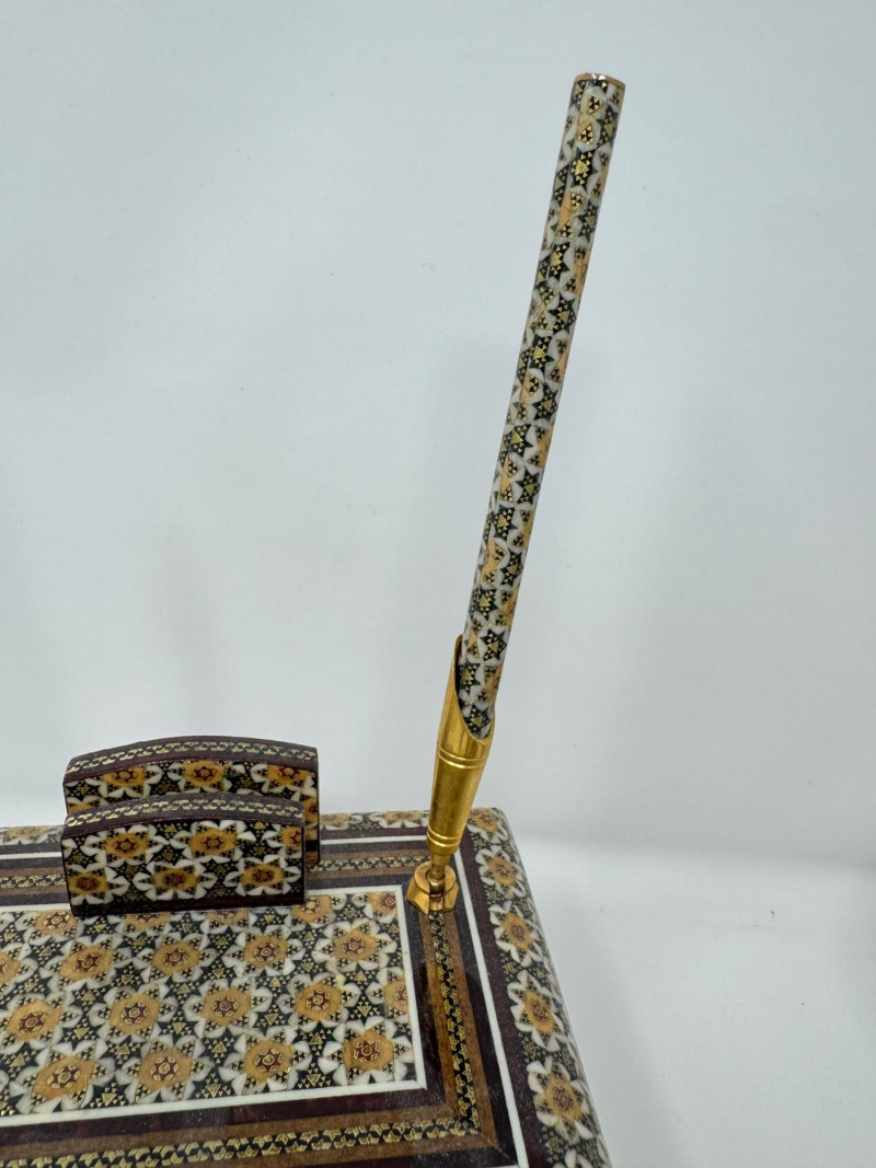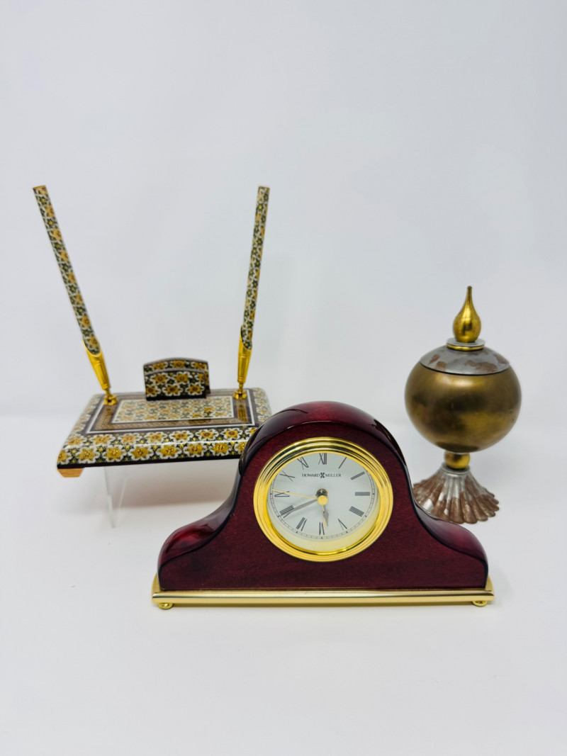 Howard Miller Desk Clock, Brass Temple Jar & Persian Pen Holder Lot.