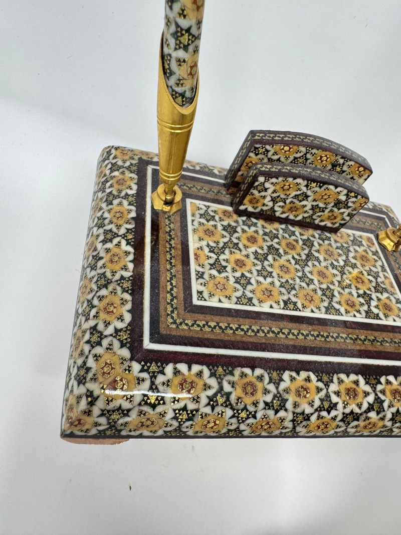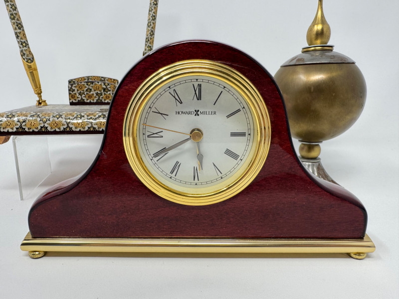 Lot # 3 - Howard Miller Desk Clock, Brass Temple Jar & Persian Pen Holder Lot