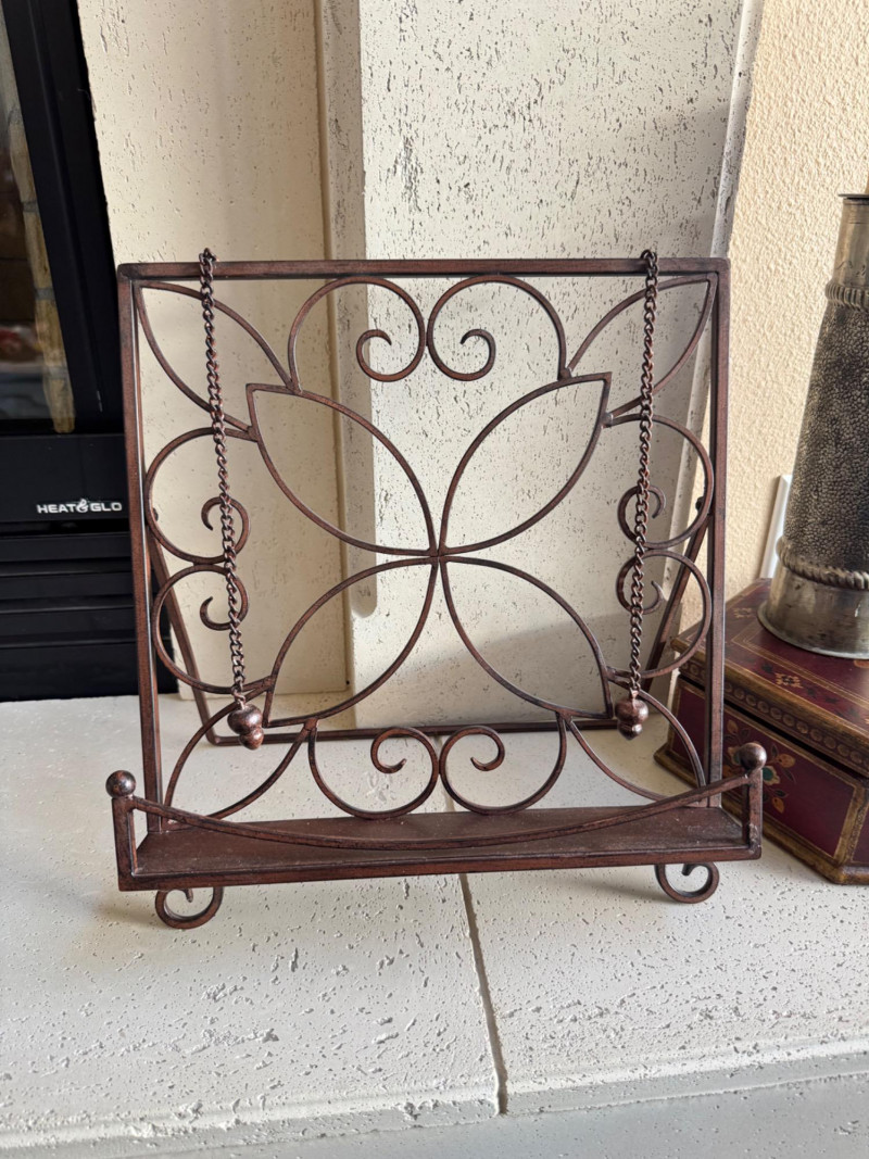 Lot # 6 - Metal Cookbook Stand, Silver Candle Holders & Hexagonal Box Set