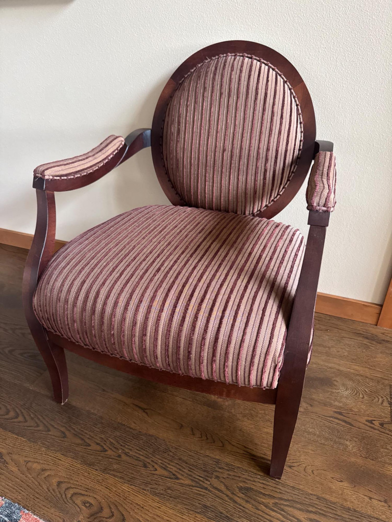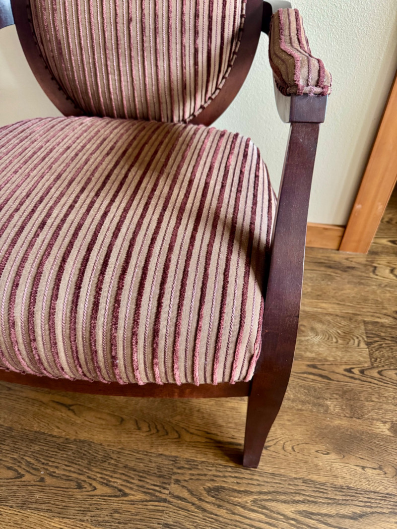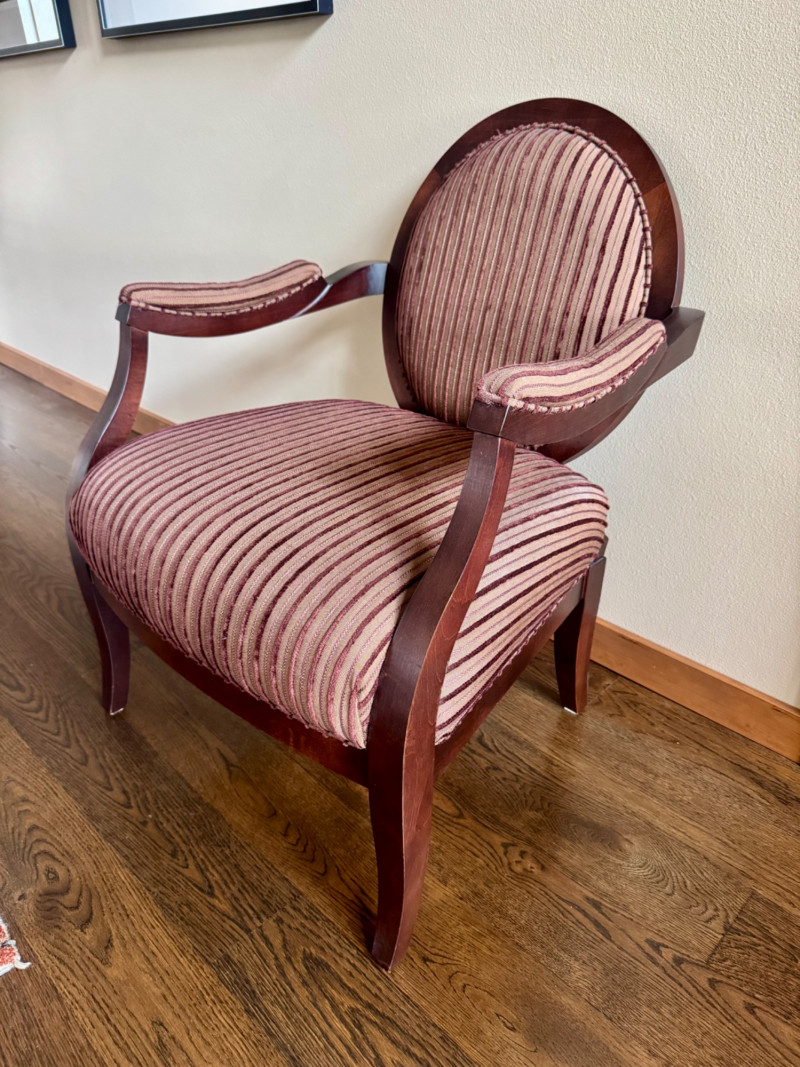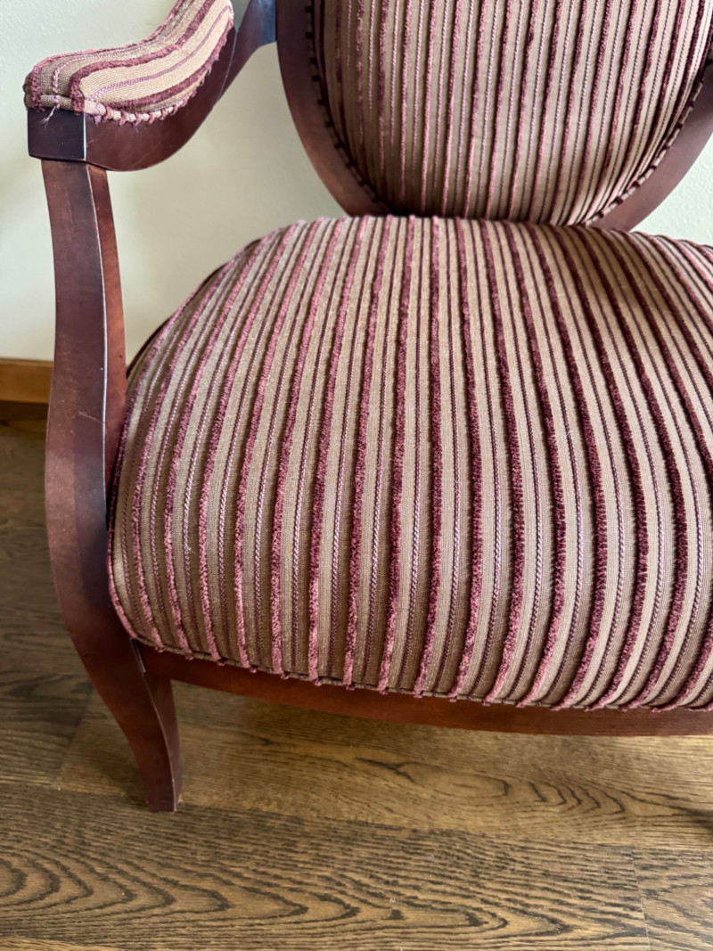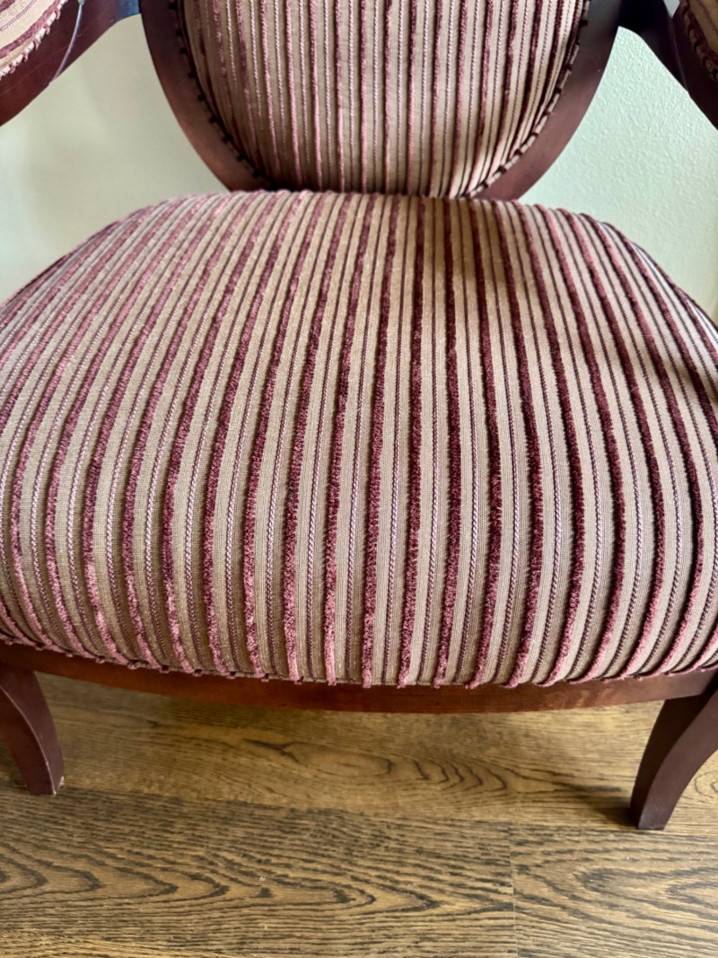 Lot # 7 - Striped Upholstered Accent Chair – Wood Frame, Vintage Finish