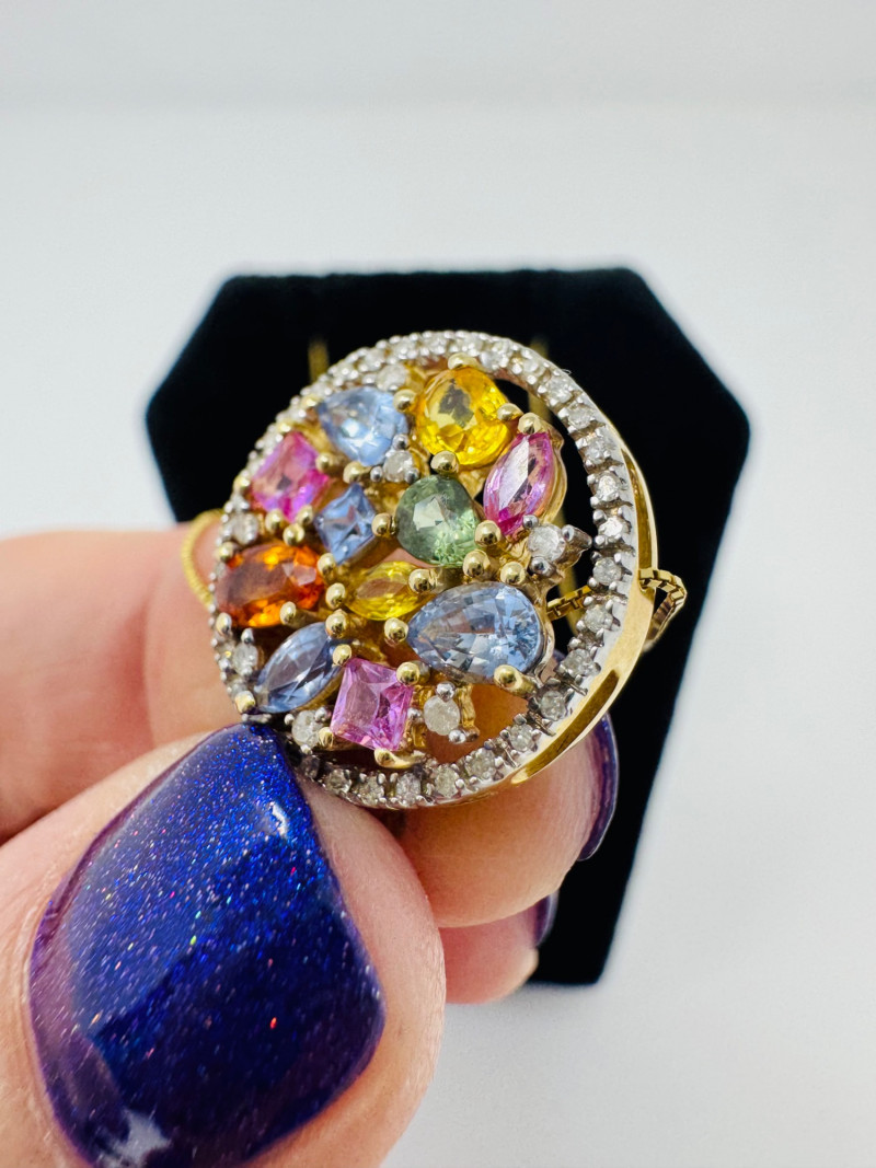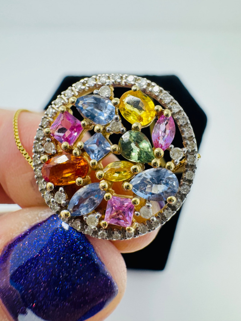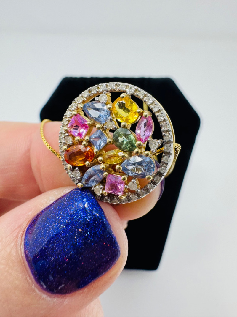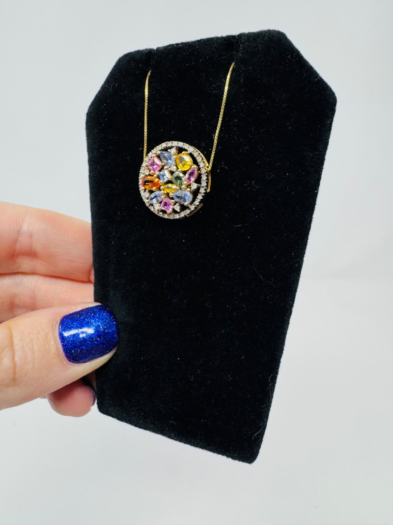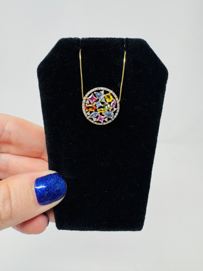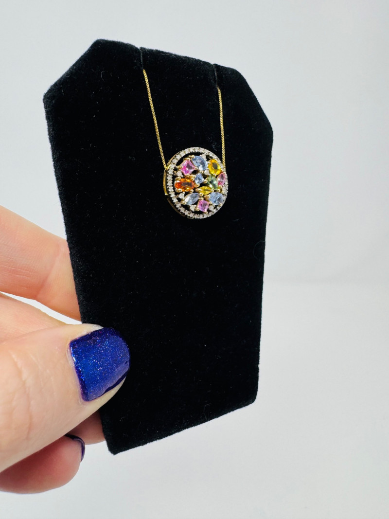 14K Gold Multi-Gem & Diamond Circle Pendant Necklace – 3.71g. Important Disclaimer: Jewelry in this lot has not been tested. By bidding, you agree to purchase as is, with no guarantees on metal purity, gemstone authenticity, or content. No refunds issued on these factors.