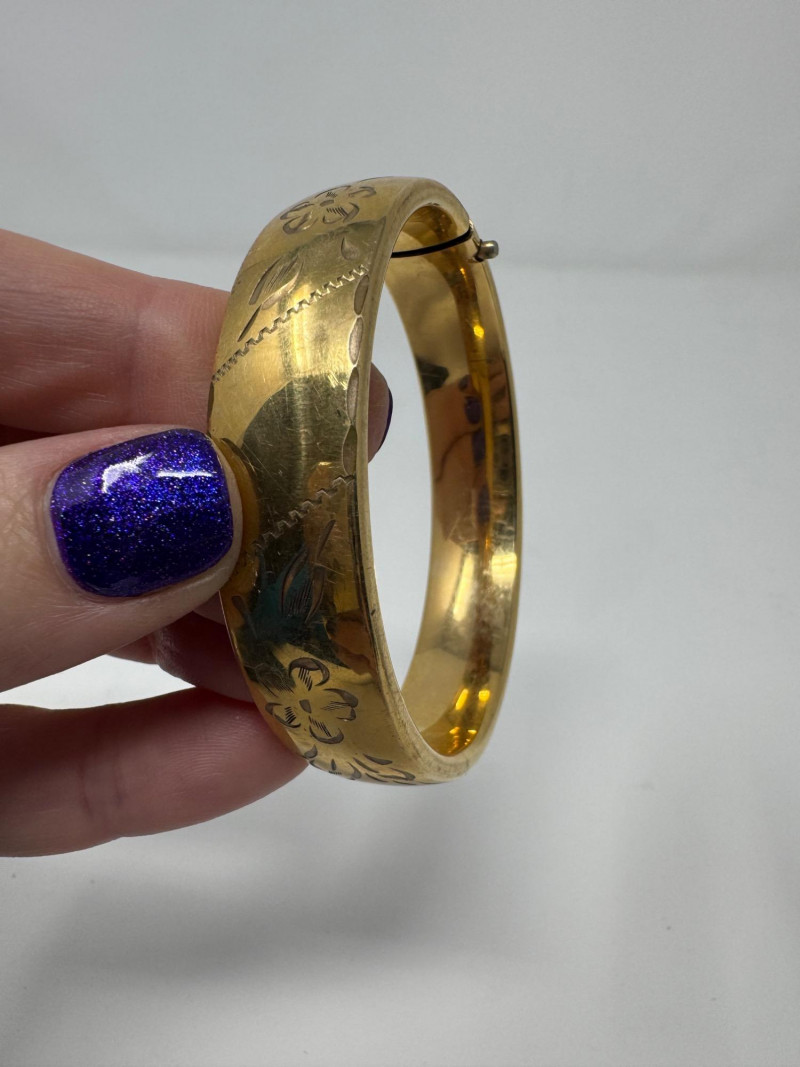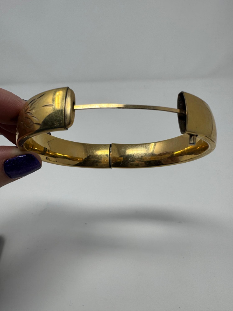 Lot # 22 - Potential 14K Gold Elephant Drop Earrings & GF Engraved Bangle, 1.52g