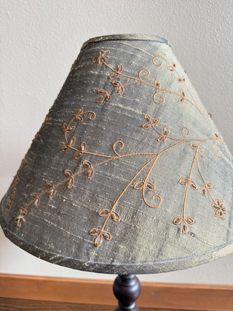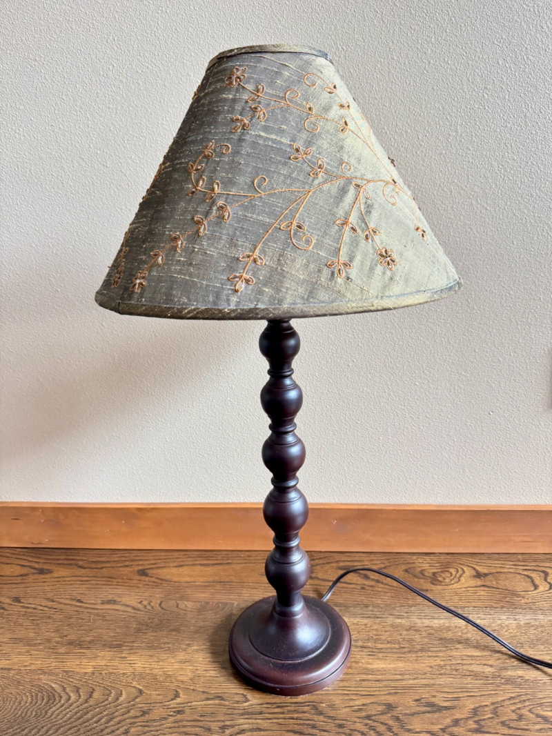 29” Table Lamp w/ Embroidered Shade & Dark Wood Base.