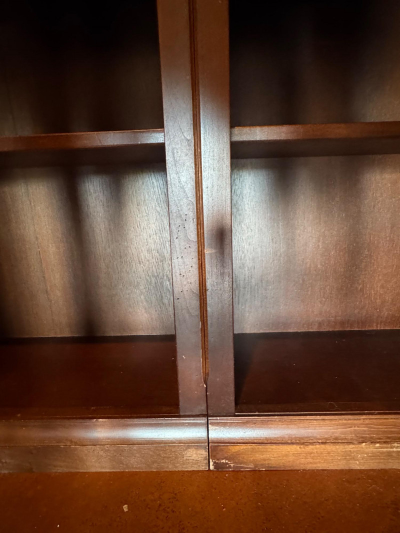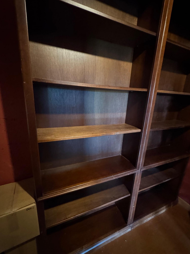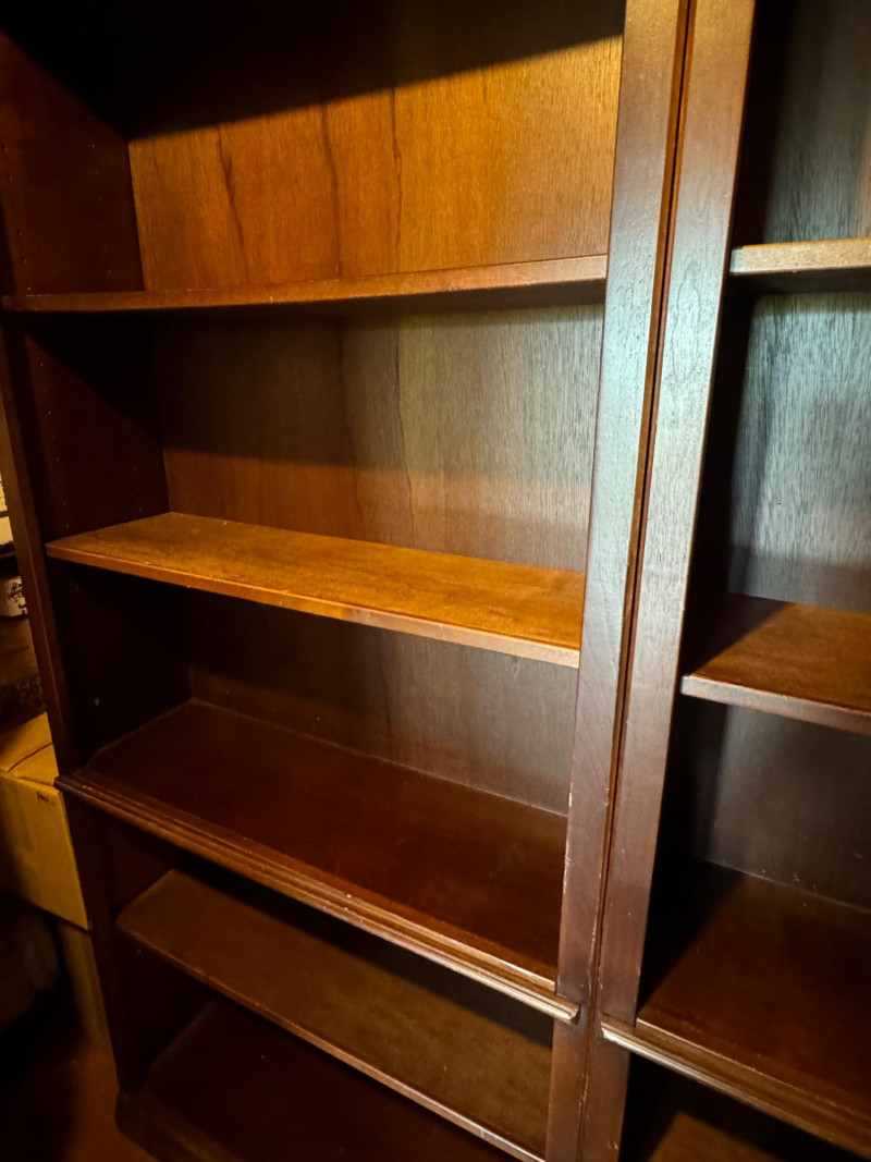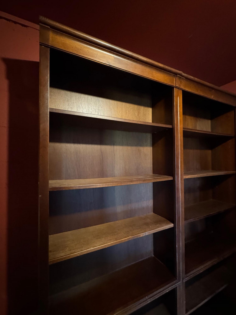 Tall Double Wood Bookcase – 84” Height, Classic Design. Bidding on this lot is an agreement that: (1.) You will have at least 2 capable, able bodied persons to lift and load at a minimum. (2.) You will bring a hand truck and/or any other tools needed to remove this item. If these steps are not followed your item will be forfeit and no refund given.