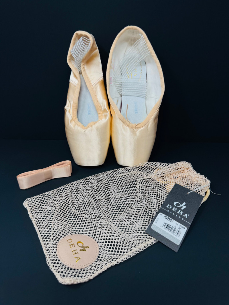 Deha Kiri Ballet Pointe Shoes Size 8W w/ Mesh Bag & Ribbon.