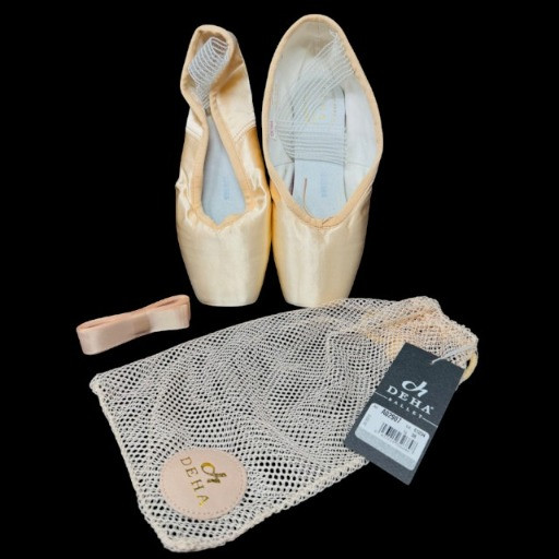 Lot # 48 - Deha Kiri Ballet Pointe Shoes Size 8W w/ Mesh Bag & Ribbon