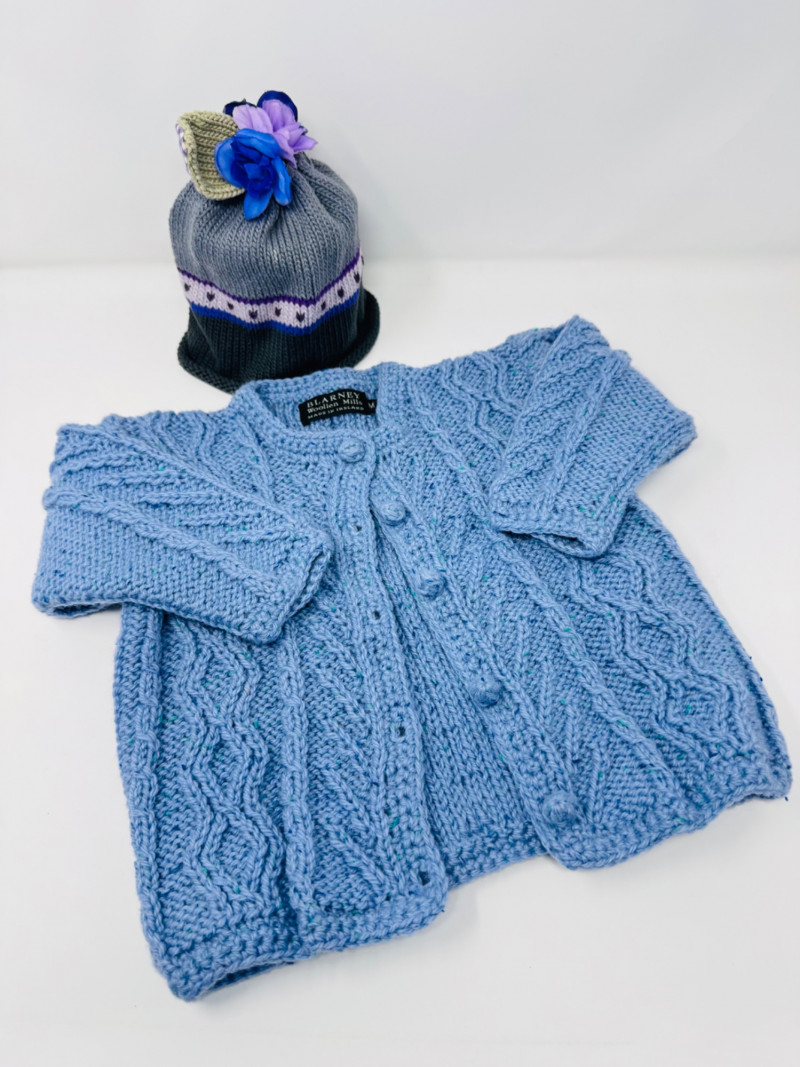 Blarney Woollen Mills Child’s Blue Wool Sweater & Knit Hat.