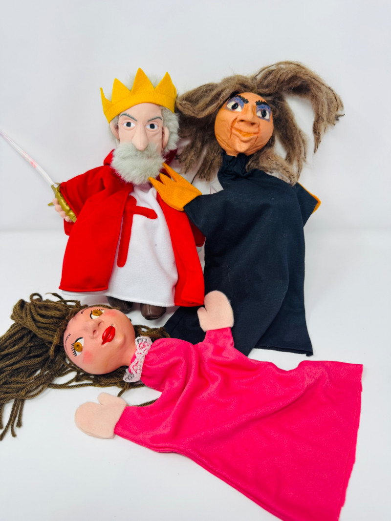 Set of 3 Vintage Hand Puppets – King, Witch & Princess.