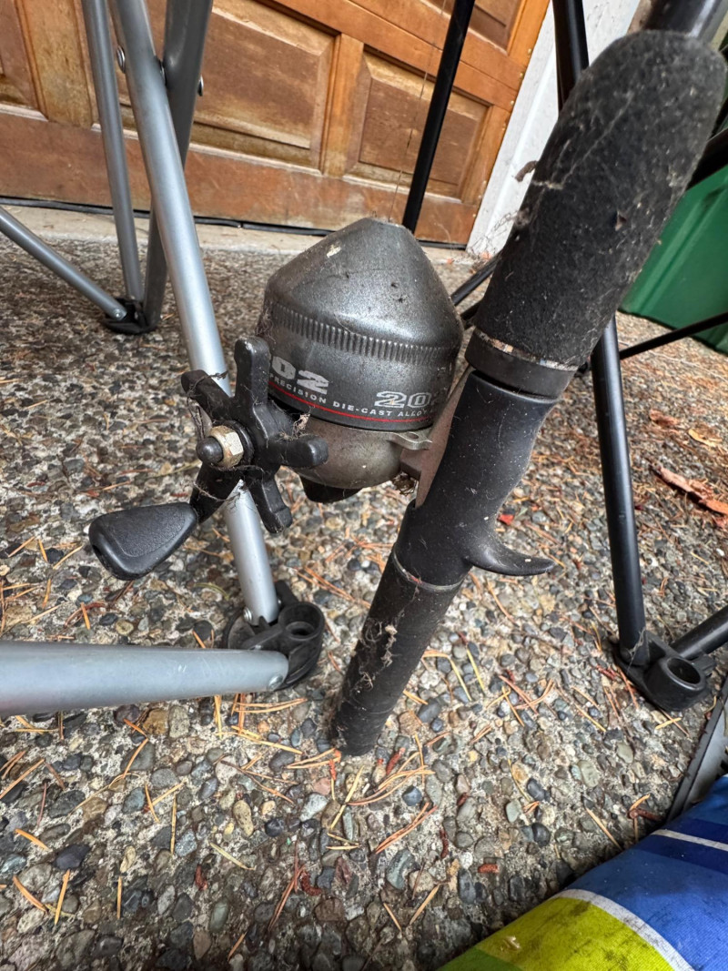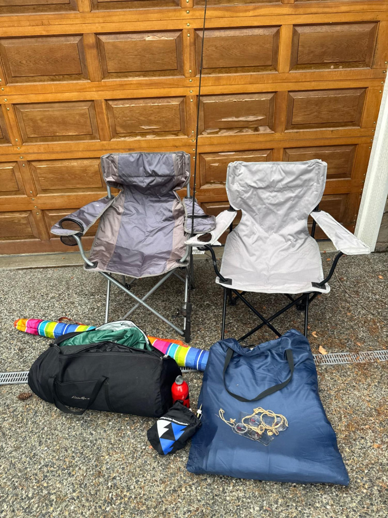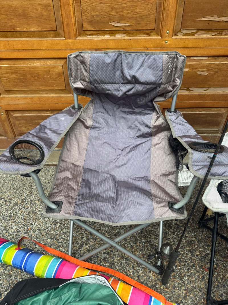 Camping Gear Lot – Chairs, Tent, Fishing Rod, Air Mattress & More.