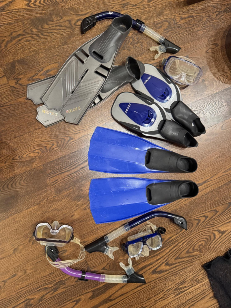 Family Snorkel & Dive Gear Lot – Fins, Masks & Snorkels, Various Sizes.