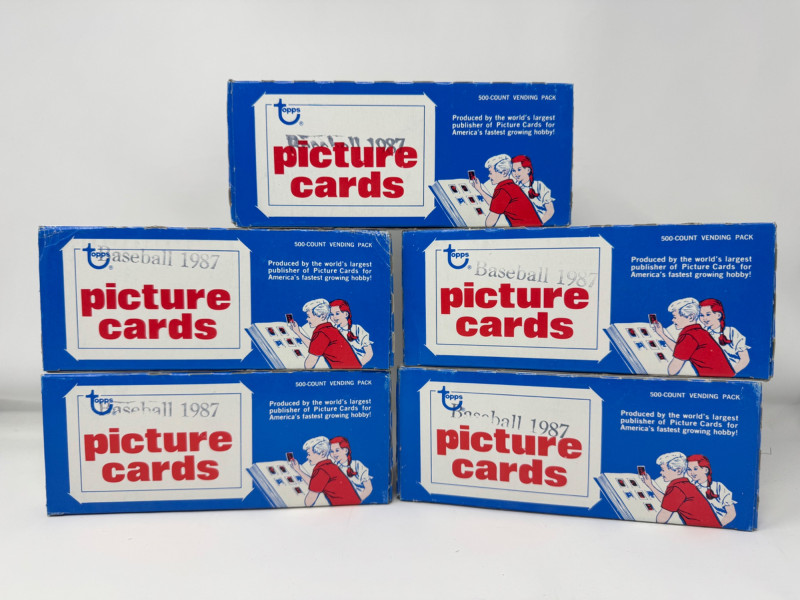 Lot # 101 - Lot of 5 – 1987 Topps Baseball Vending Boxes (Approx. 95% Full)