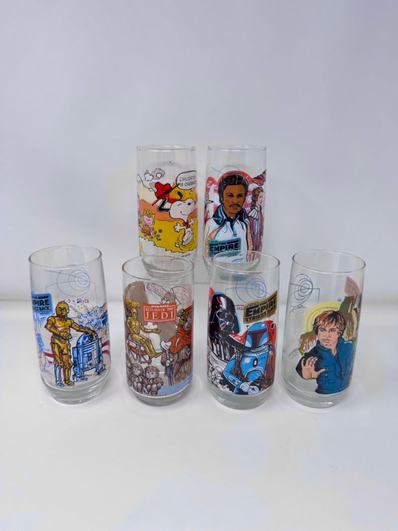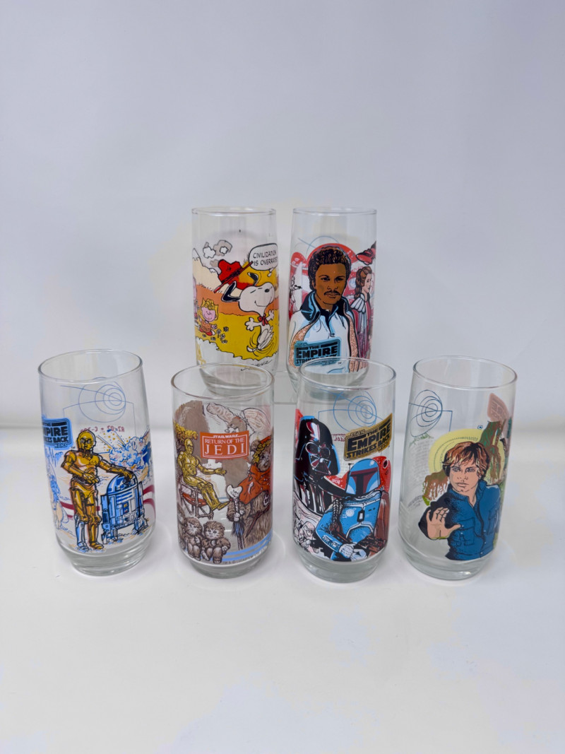 1980 Star Wars & Snoopy Collector Glasses – Lot of 6.