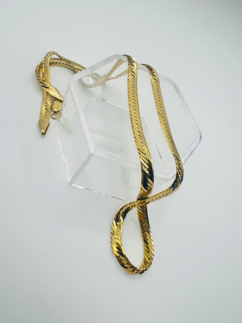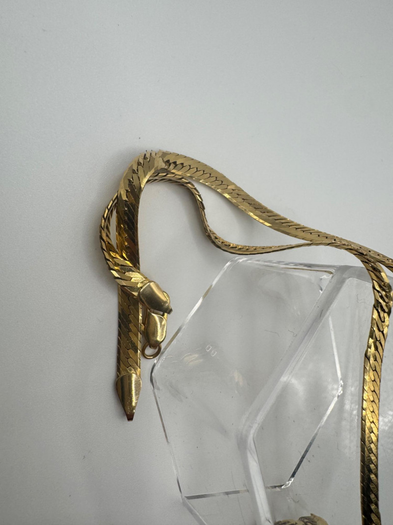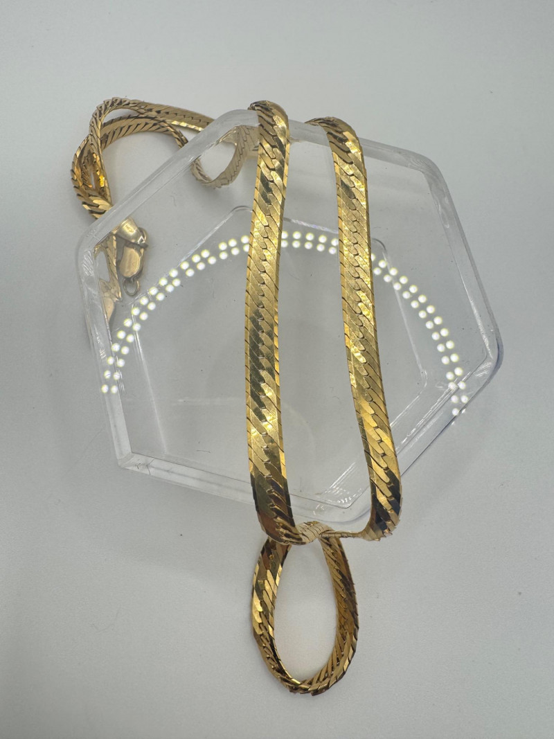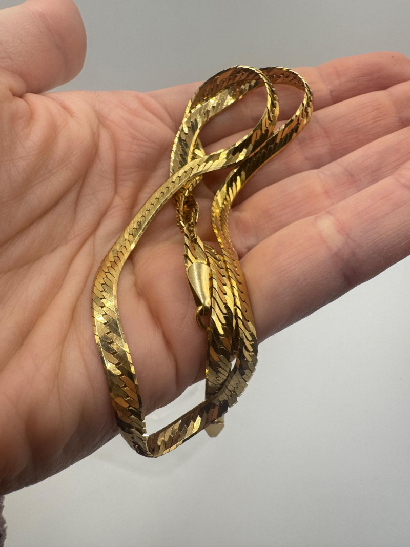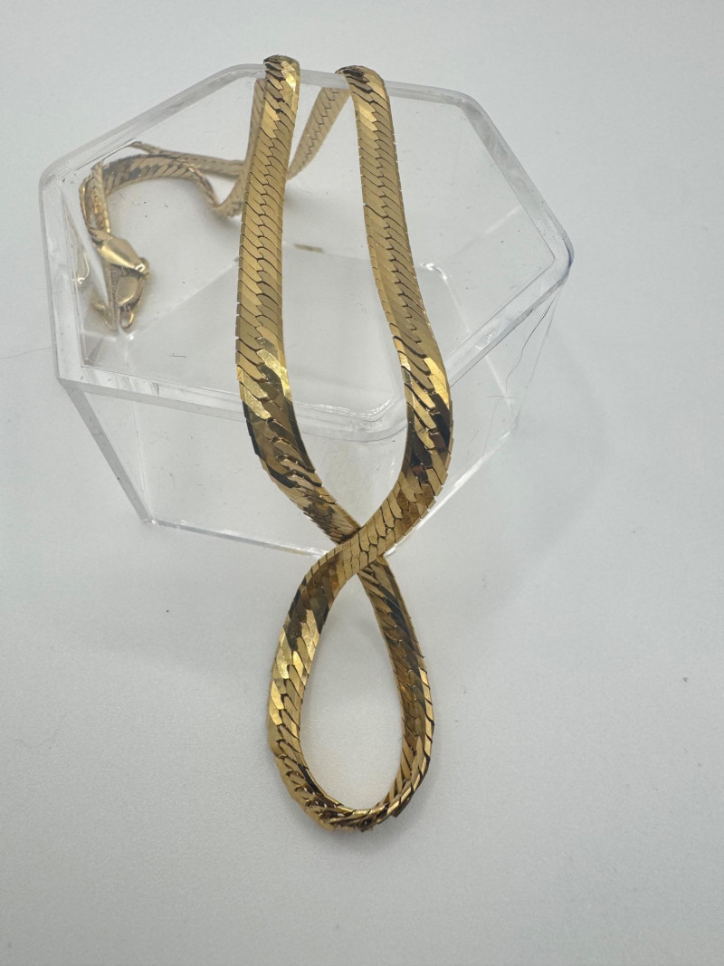 14K Italy Chunky Herringbone Flat Gold Chain Necklace – 14.25g. Important Disclaimer: Jewelry in this lot has not been tested. By bidding, you agree to purchase as is, with no guarantees on metal purity, gemstone authenticity, or content. No refunds issued on these factors.