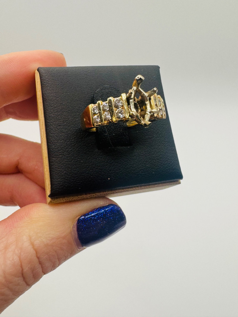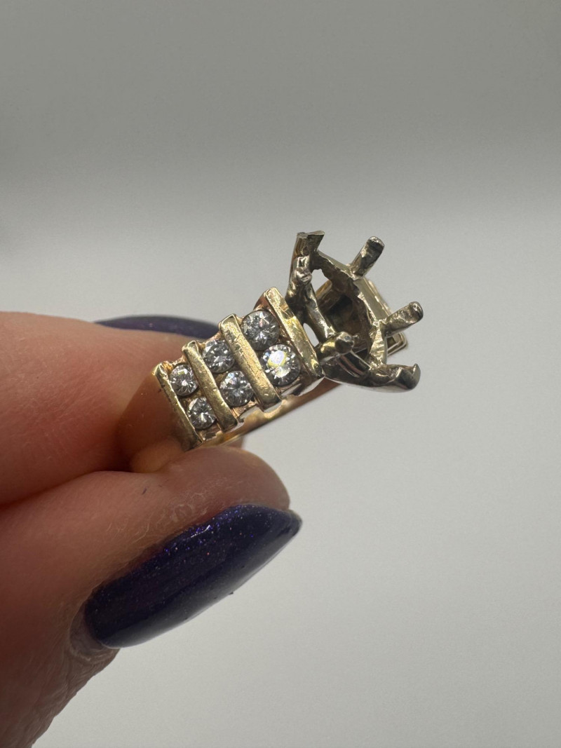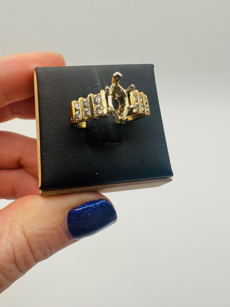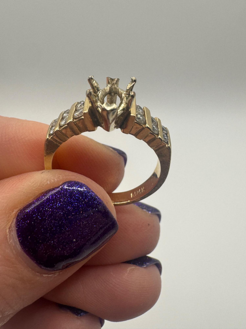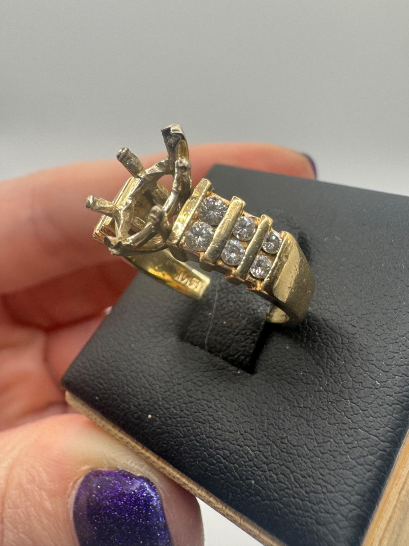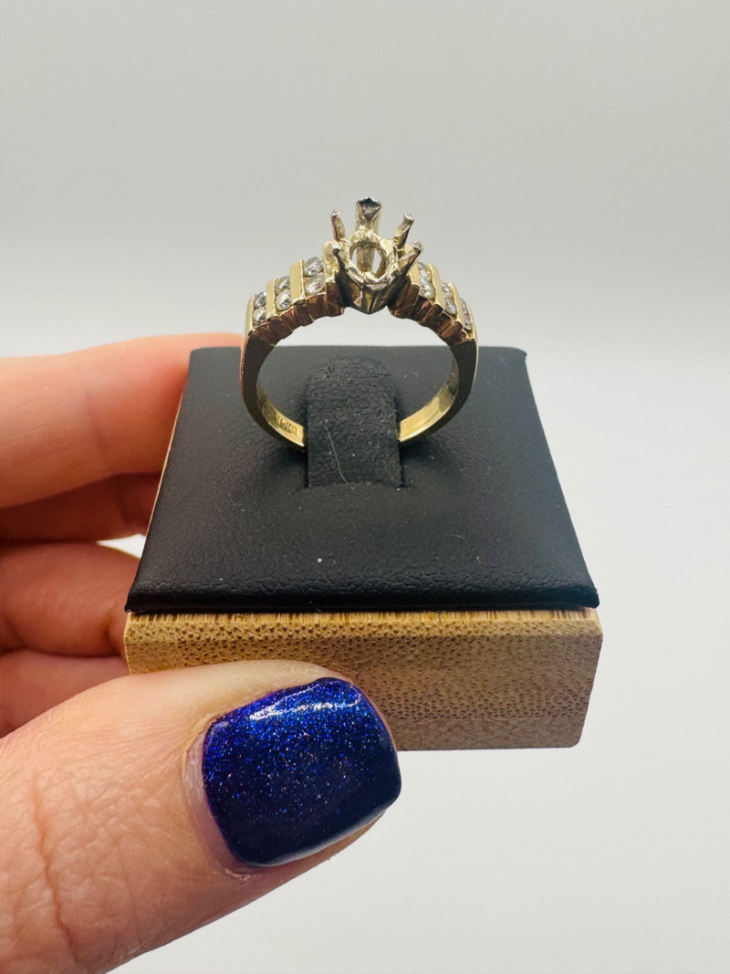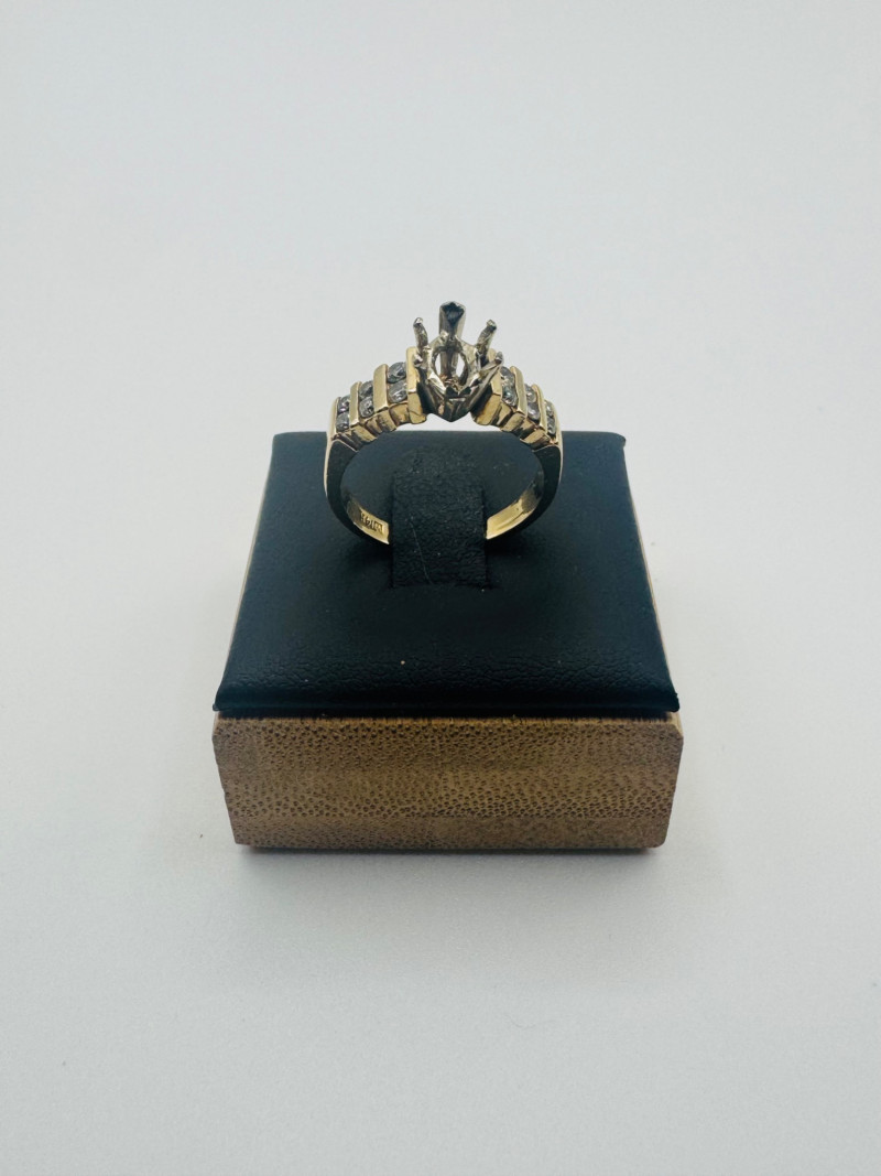 14K Gold Ring Mount w/ Diamonds– Approx. 5g Stamped “14K” inside band