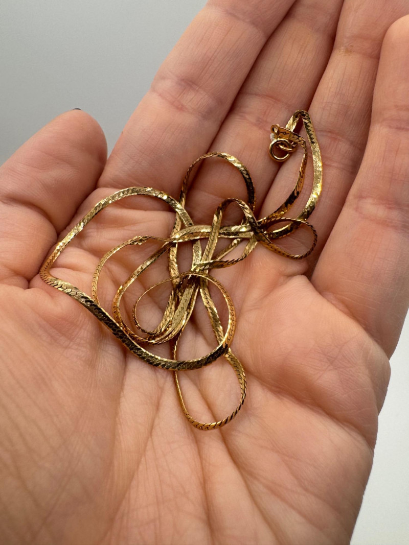 14K Italy Flat Herringbone-Style Gold Necklace – Kinks Present, 3.44g.