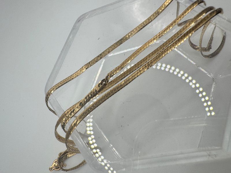 Lot # 120 - 14K Italy Flat Herringbone-Style Gold Necklace – Kinks Present, 3.44g