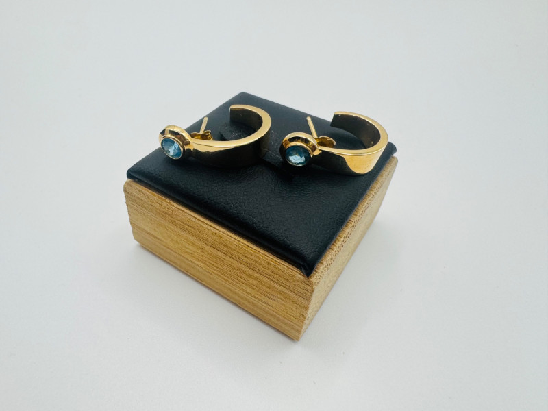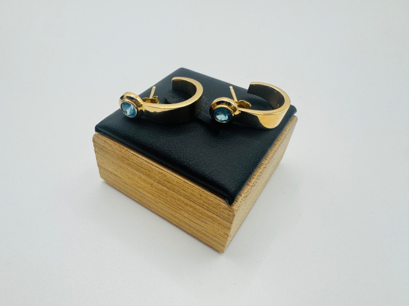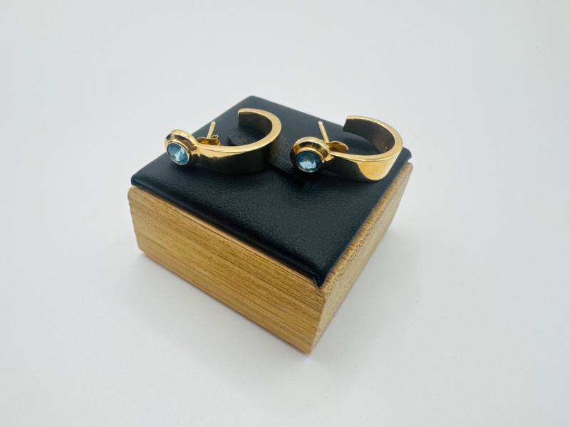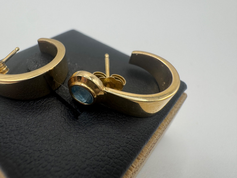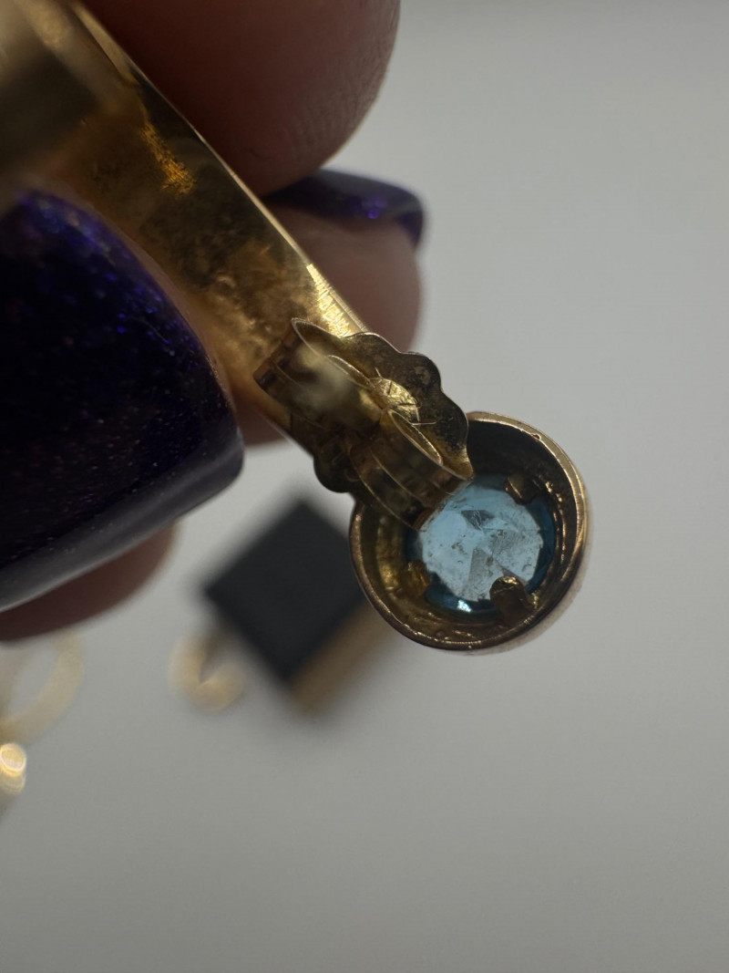 Lot # 122 - 14K Gold Hoop Earrings w/ Likely Blue Topaz Stones – 1.89g