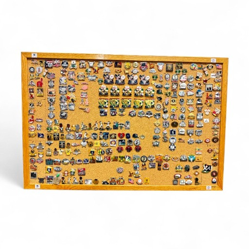 Lot # 30 - Large MLB Baseball Pin Collection on Cork Display Board