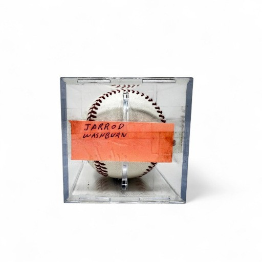 Jarrod Washburn #56 Signed Baseball in Display Case. Disclaimer: The signature on this item has not undergone professional or third-party authentication. While it appears to be hand-signed and was represented as genuine by the original owner, no independent verification has been performed.