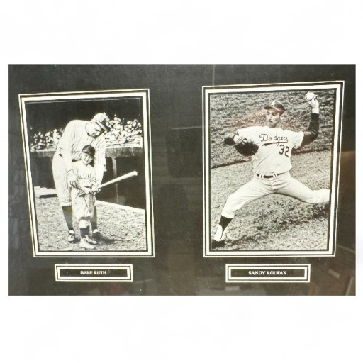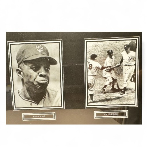 Framed Baseball Legends Photo Collage – Ruth, Gehrig, Mays & DiMaggio.