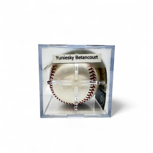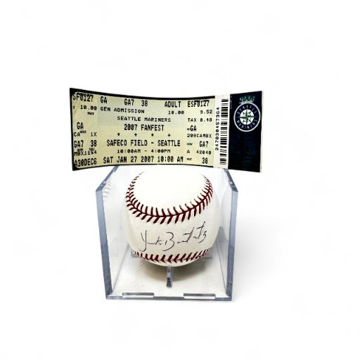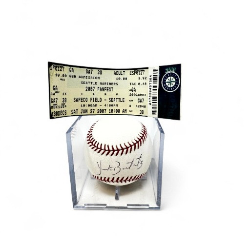 Yuniesky Betancourt Signed Baseball – Seattle Mariners w/ Ticket. Disclaimer: The signature on this item has not undergone professional or third-party authentication. While it appears to be hand-signed and was represented as genuine by the original owner, no independent verification has been performed.