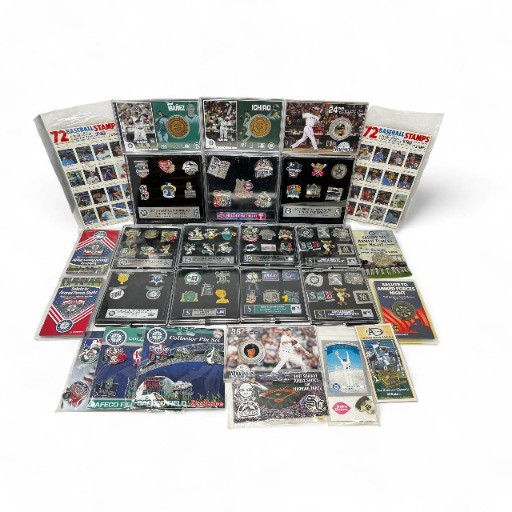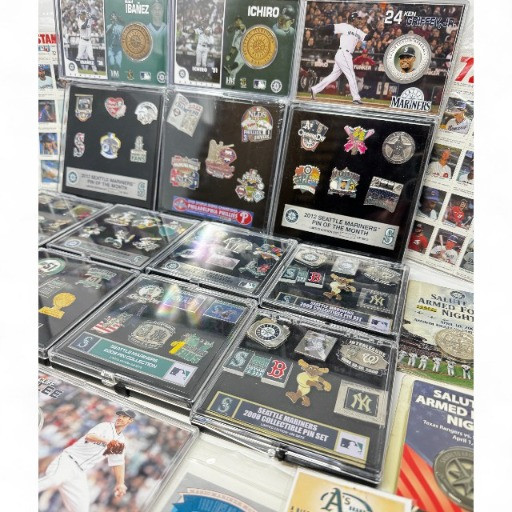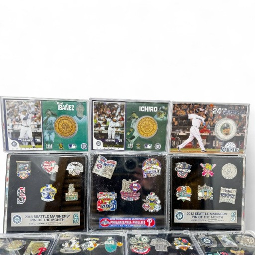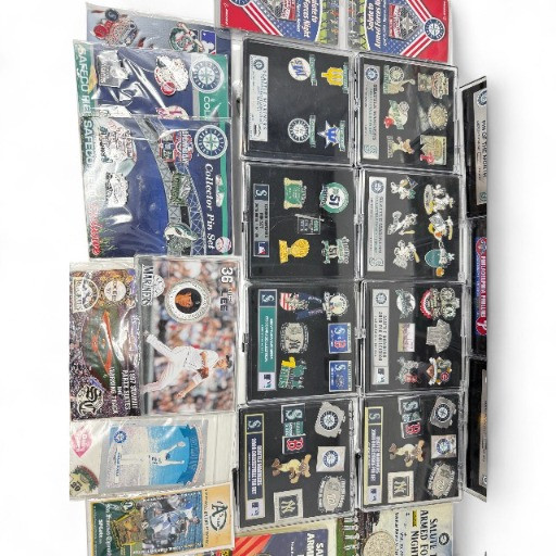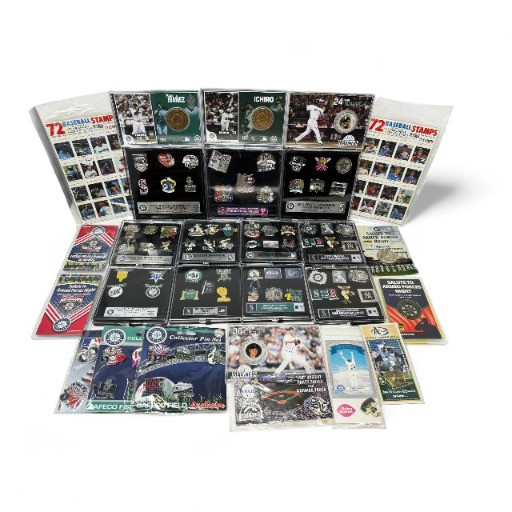 Lot # 74 - Large Collection of Seattle Mariners Pins, Coins, & Stamps