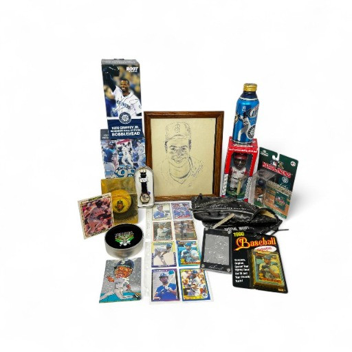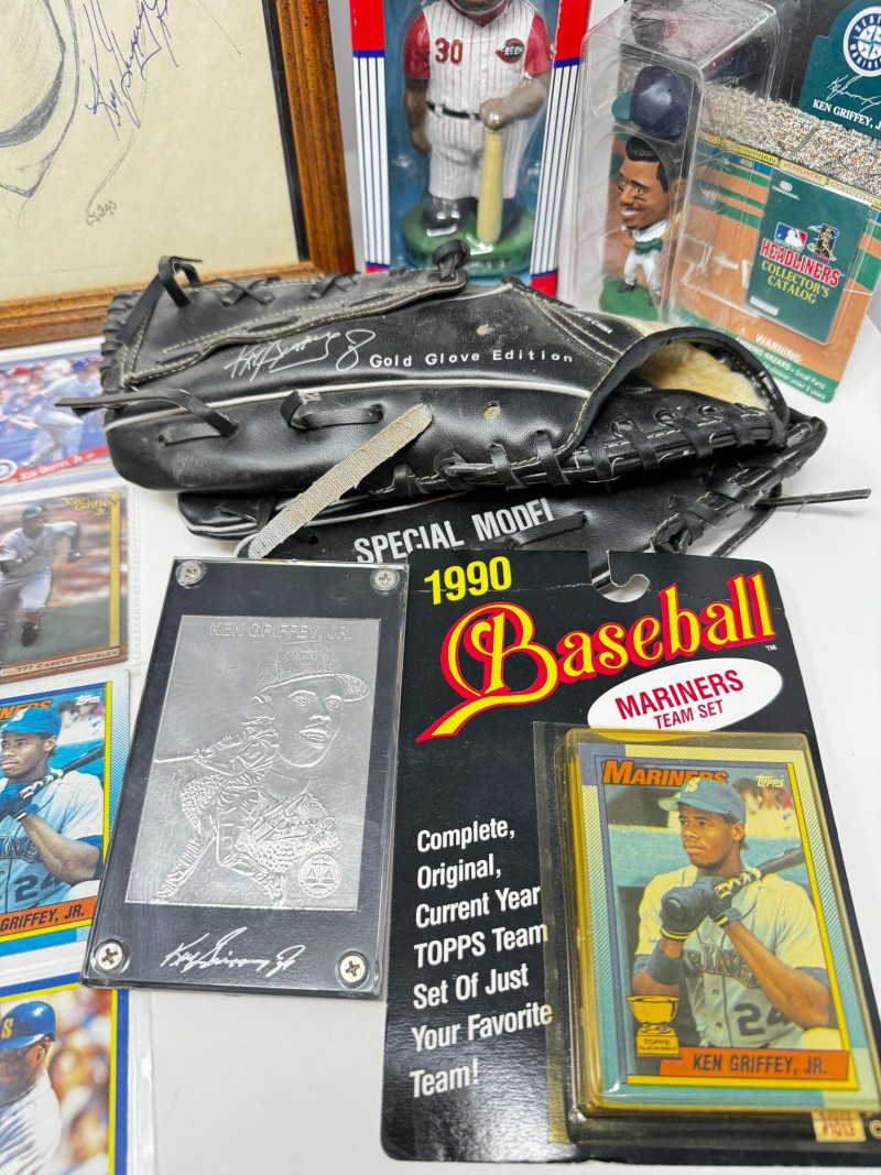 Lot # 75 - Ken Griffey Jr Mariners Collectible Lot – Cards, Glove & Memorabilia