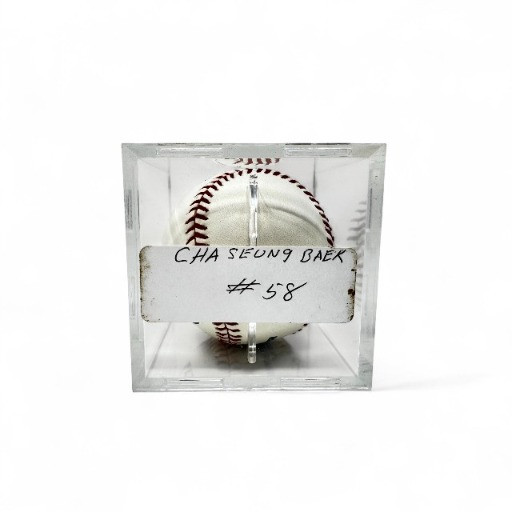 Cha Seung Baek Signed Baseball in Display Case – Seattle Mariners #58. Disclaimer: The signature on this item has not undergone professional or third-party authentication. While it appears to be hand-signed and was represented as genuine by the original owner, no independent verification has been performed.