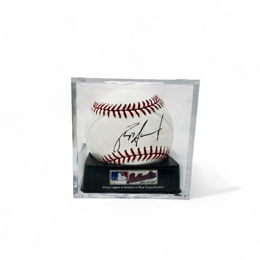 Phillippe Aumont Signed Baseball in Display Case. Disclaimer: The signature on this item has not undergone professional or third-party authentication. While it appears to be hand-signed and was represented as genuine by the original owner, no independent verification has been performed.