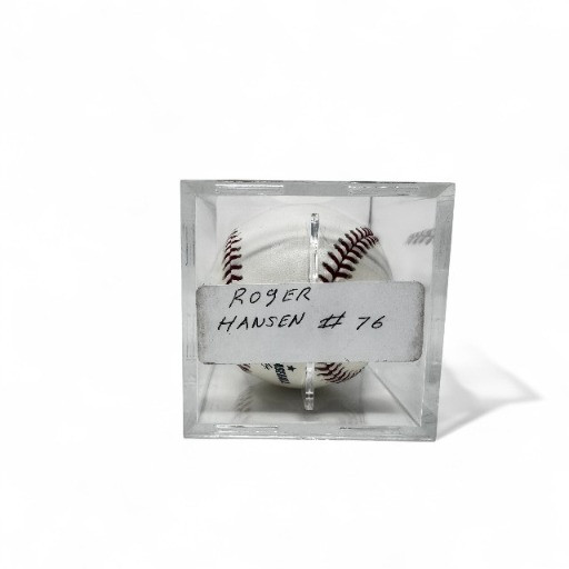 Roger Hansen Signed Baseball in Display Case. Disclaimer: The signature on this item has not undergone professional or third-party authentication. While it appears to be hand-signed and was represented as genuine by the original owner, no independent verification has been performed.