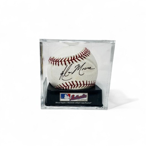 Adam Moore Signed Baseball in Display Case. Disclaimer: The signature on this item has not undergone professional or third-party authentication. While it appears to be hand-signed and was represented as genuine by the original owner, no independent verification has been performed.