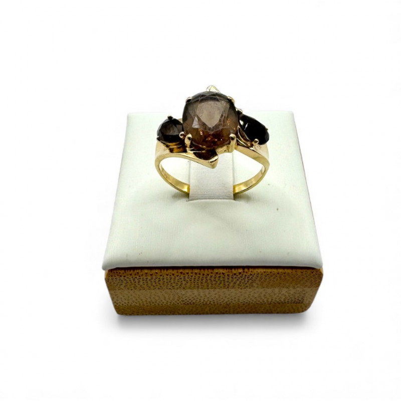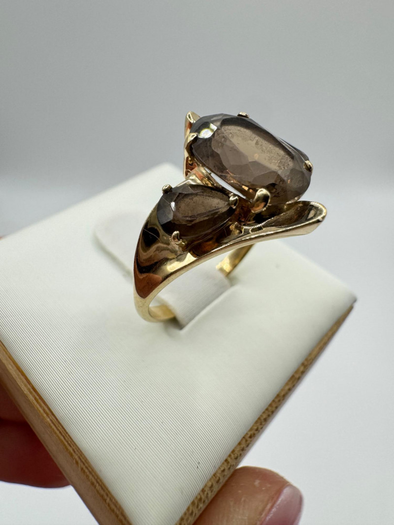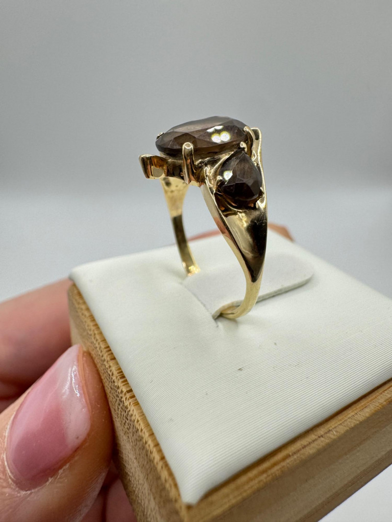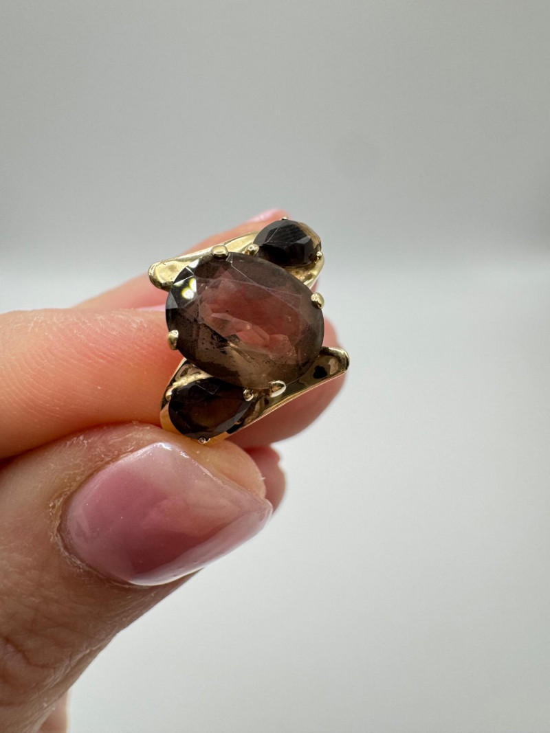 10k Gold Ring w/ Smoky Quartz Stones – Sz 6.75, 3.03g.
