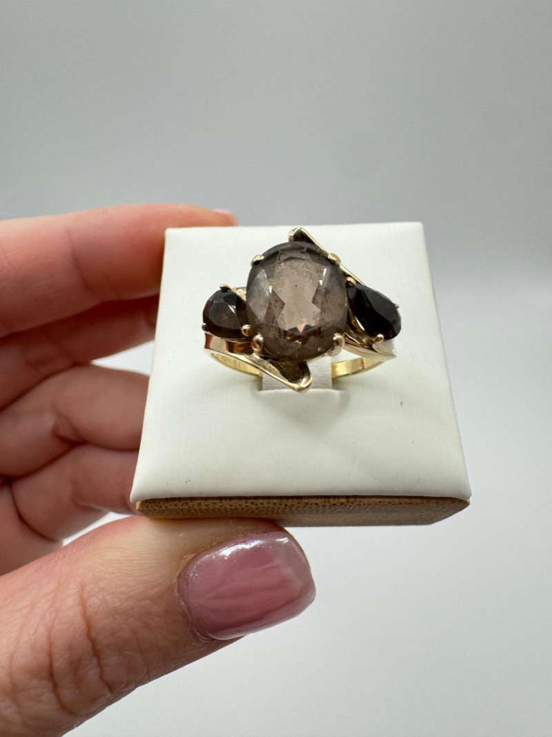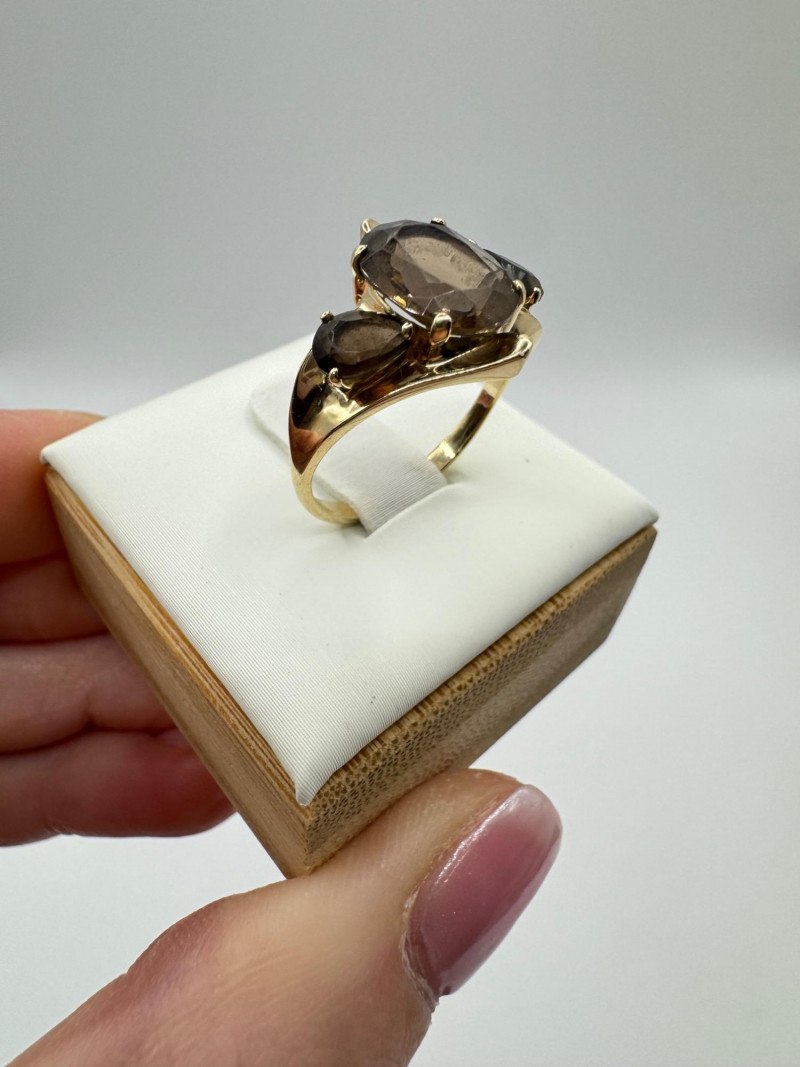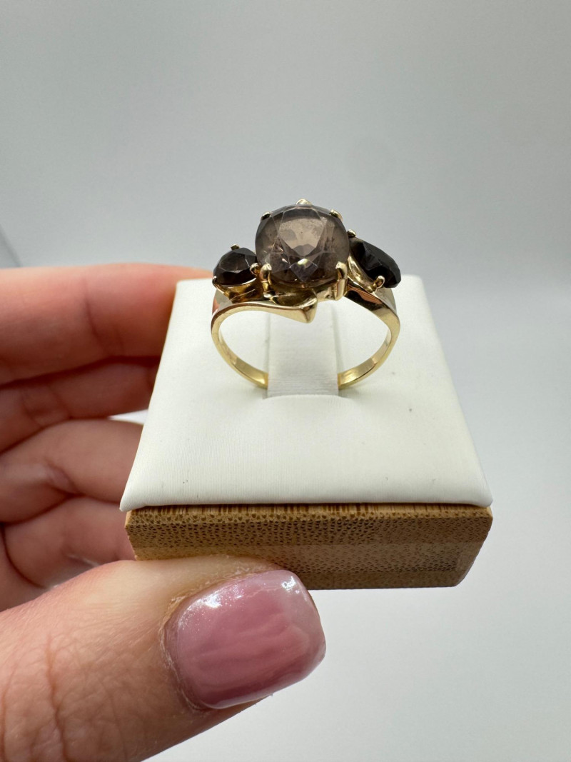 Lot # 6 - 10k Gold Ring w/ Smoky Quartz Stones – Sz 6.75, 3.03g
