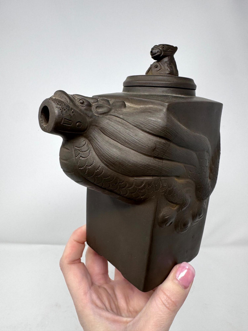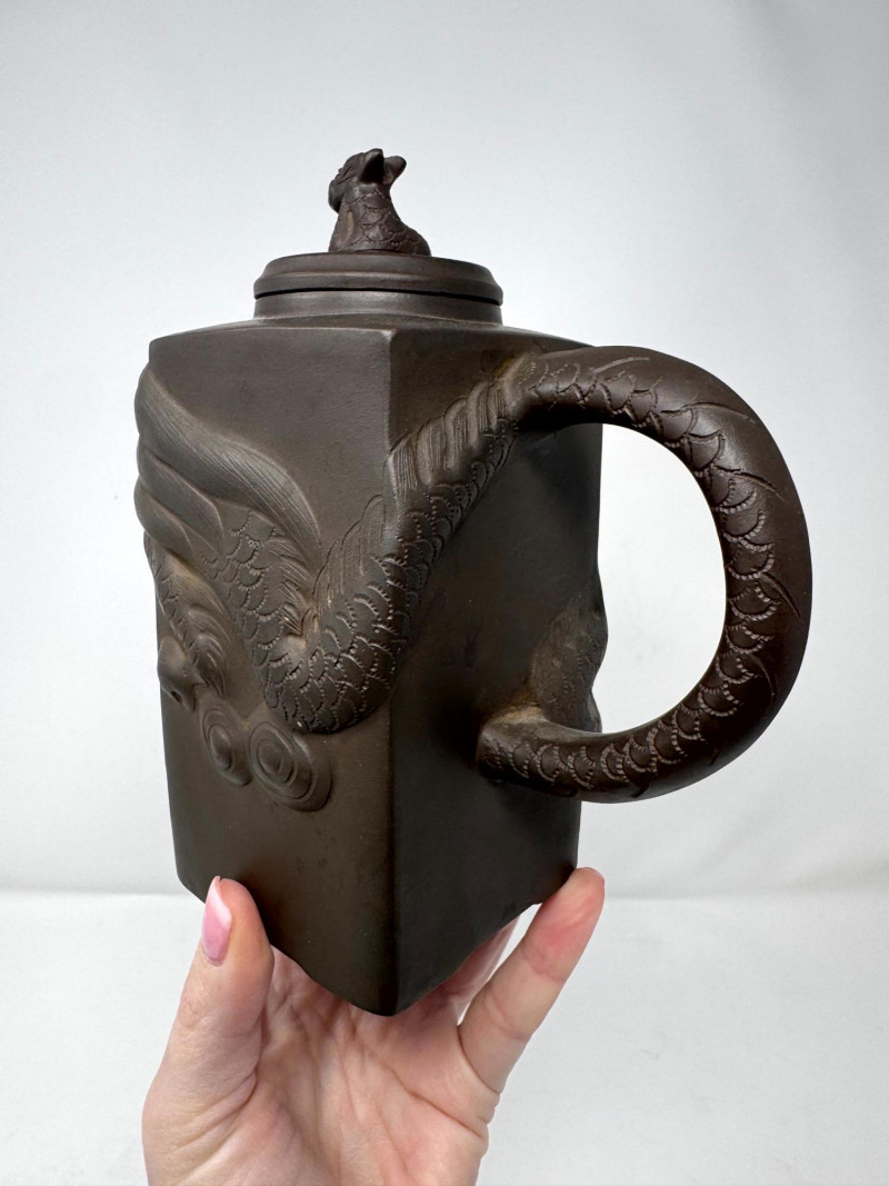 Asian Hand-Carved Dragon Teapot – Sculptural Spout & Finial.