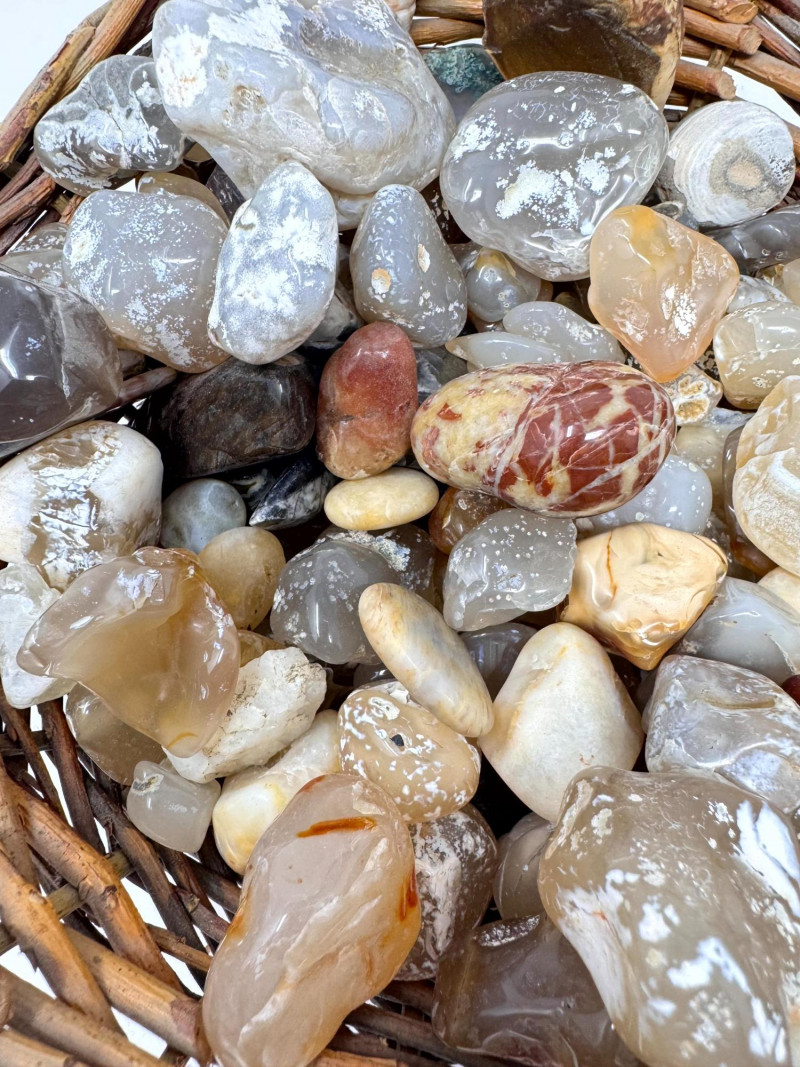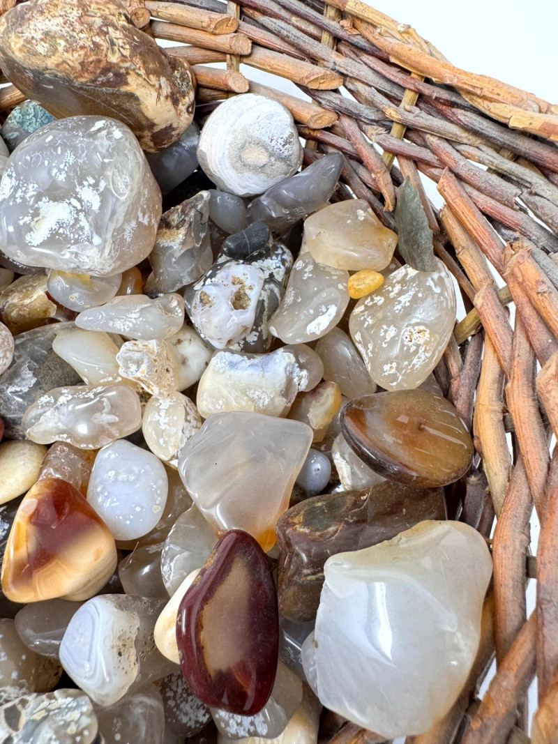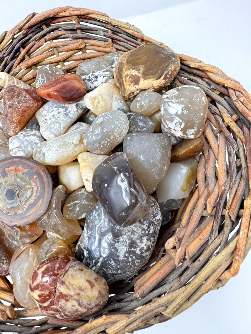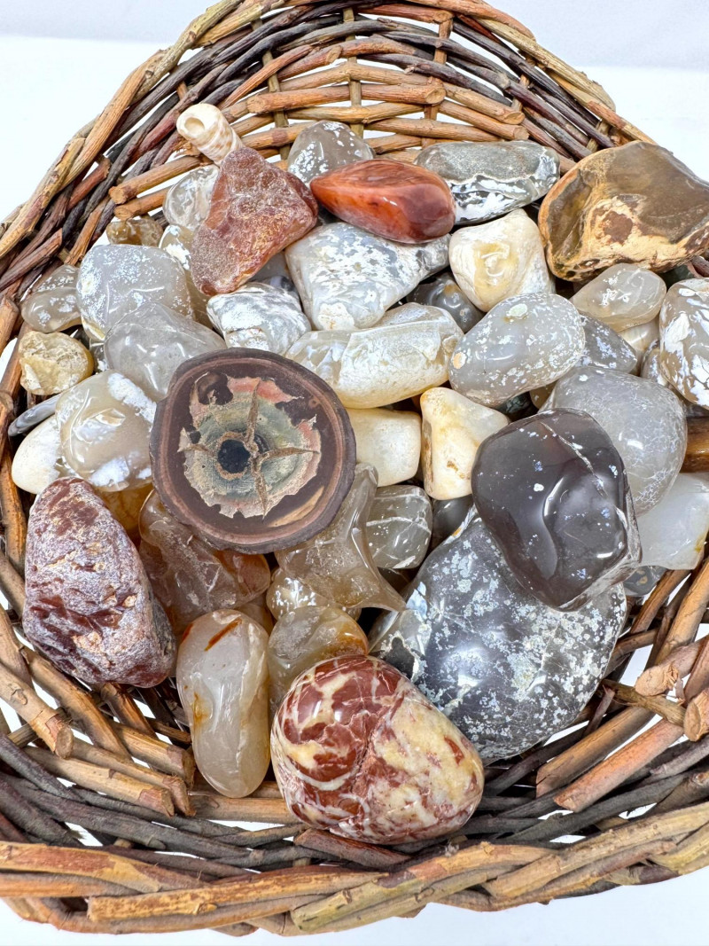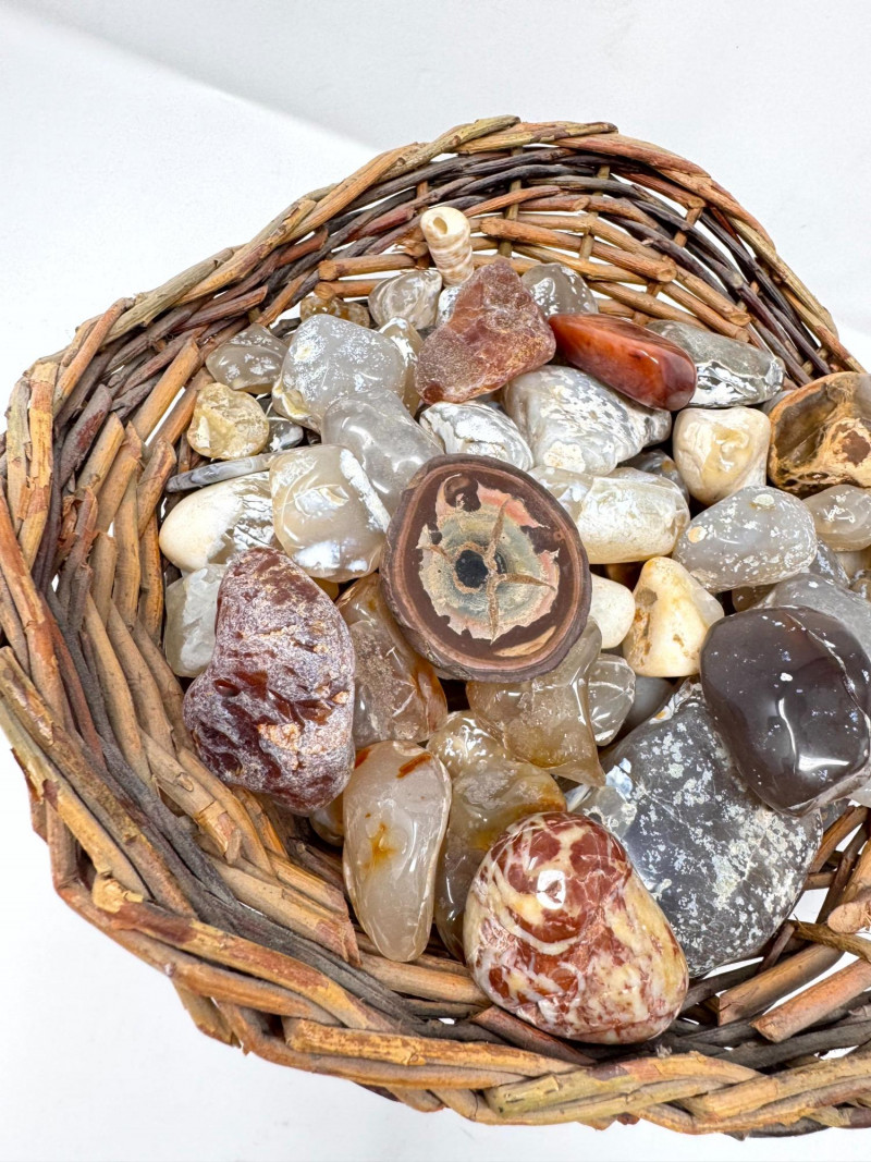 Lot # 8 - Woven Basket Full of Polished Stones & Agates