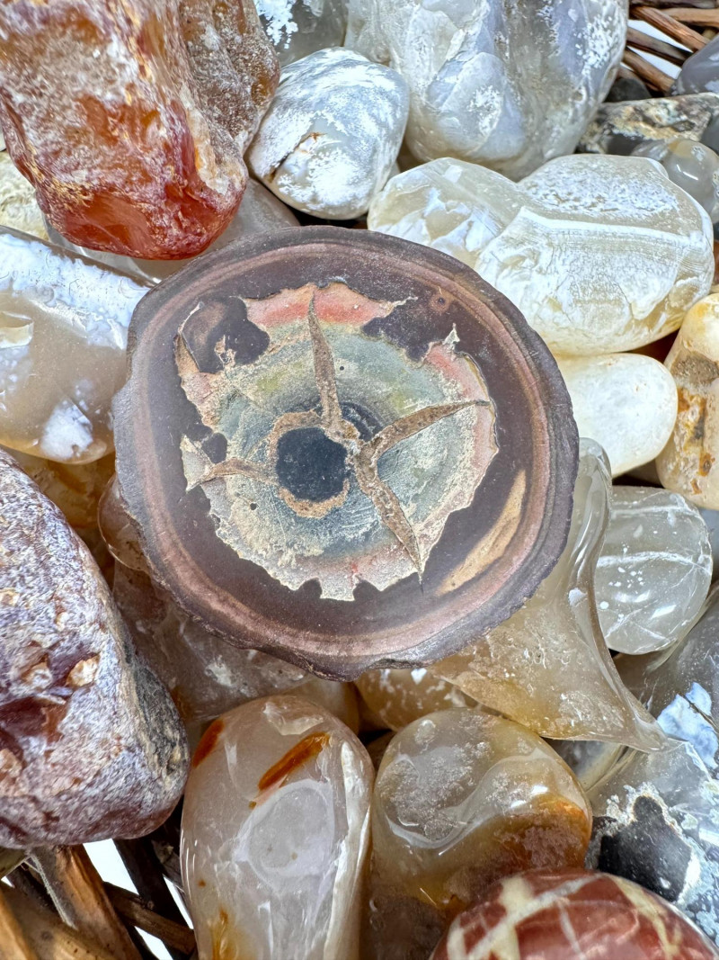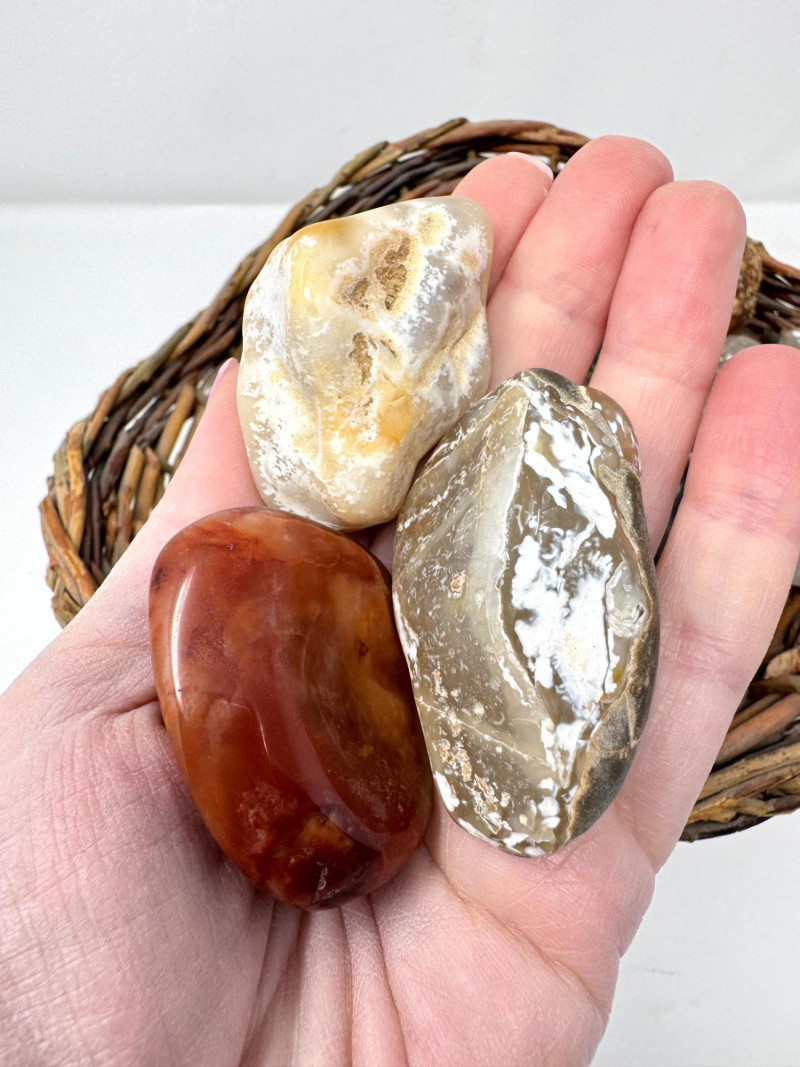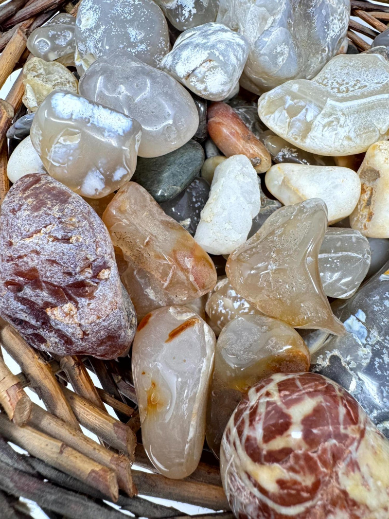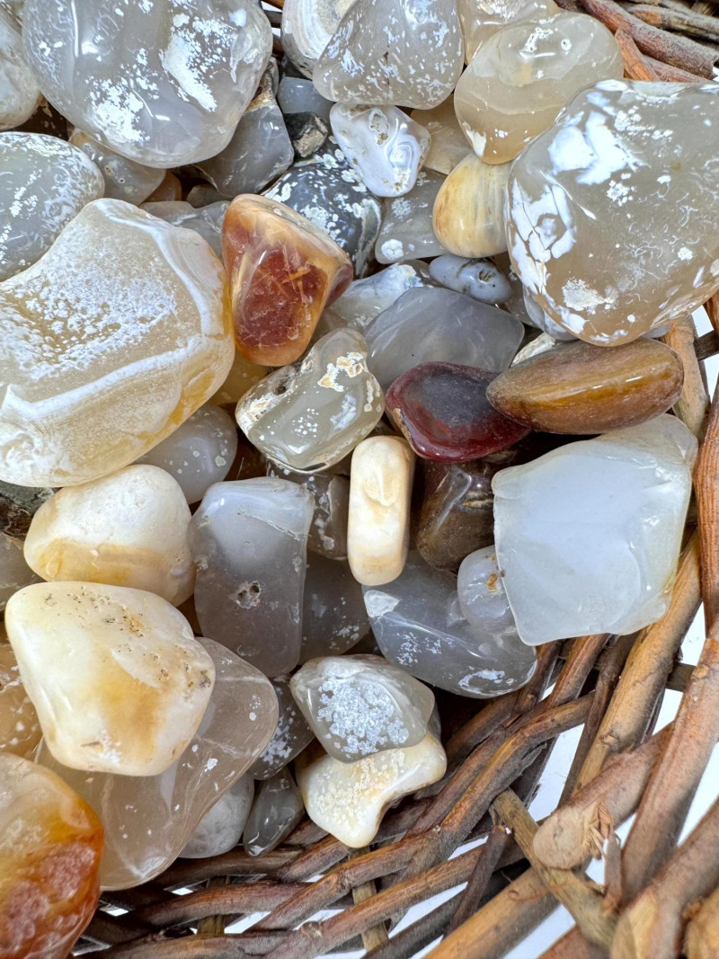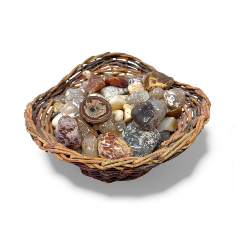 Lot # 8 - Woven Basket Full of Polished Stones & Agates