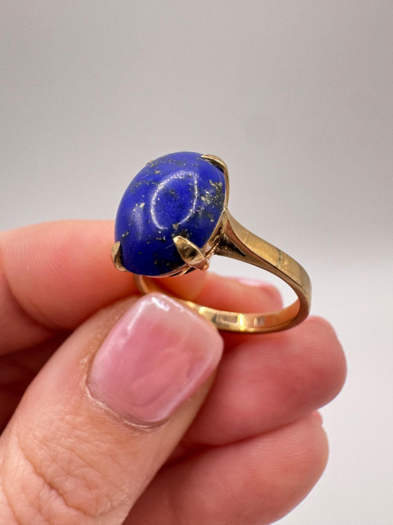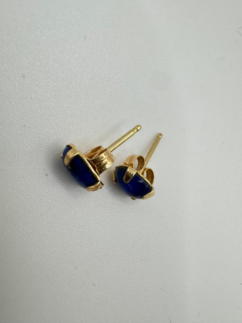 14K Gold Lapis Lazuli Ring & Stud Earrings Set – 4.32g. Important Disclaimer: Jewelry/gemstones/metals in this lot has not been tested. By bidding, you agree to purchase as is, with no guarantees on metal purity, gemstone authenticity, or content. No refunds issued on these factors.