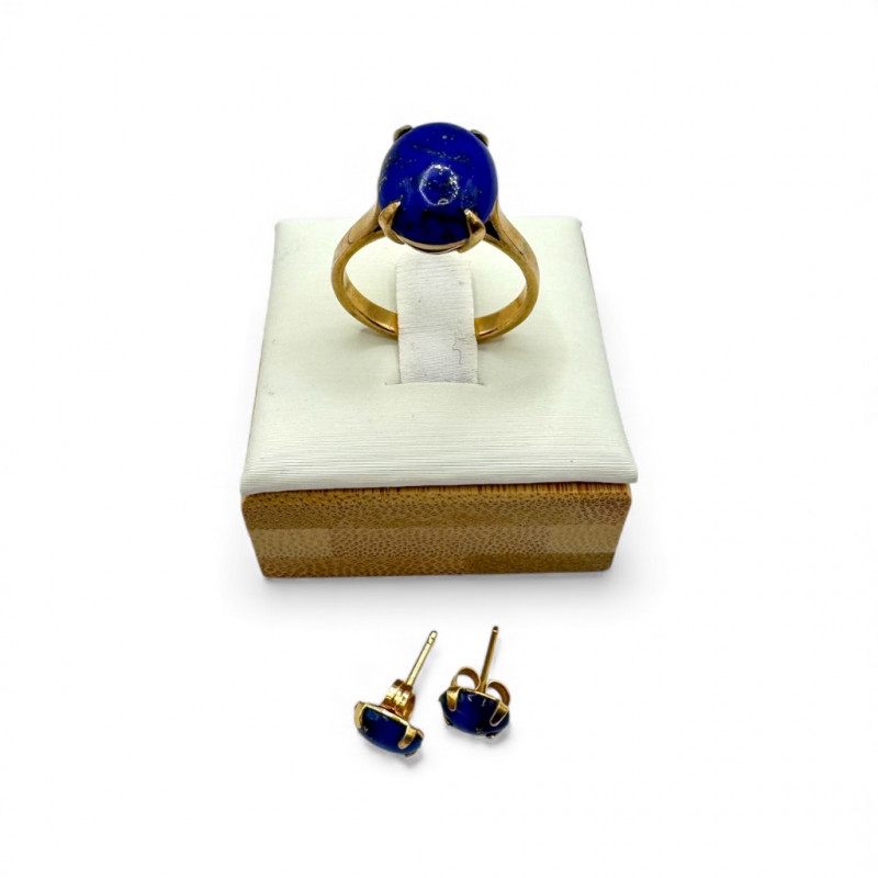 Lot # 21 - 14K Gold Lapis Lazuli Ring & Stud Earrings Set – 4.32g