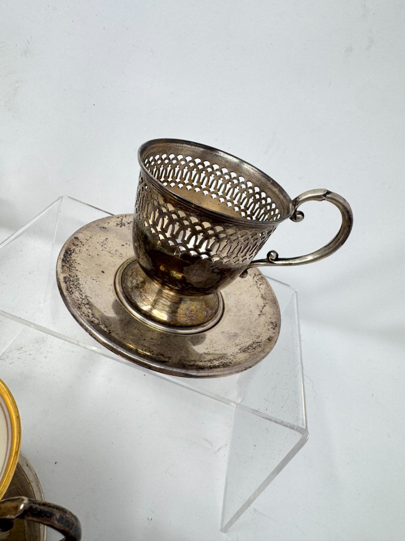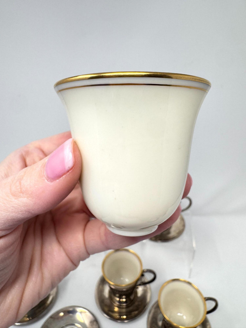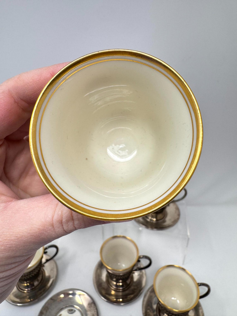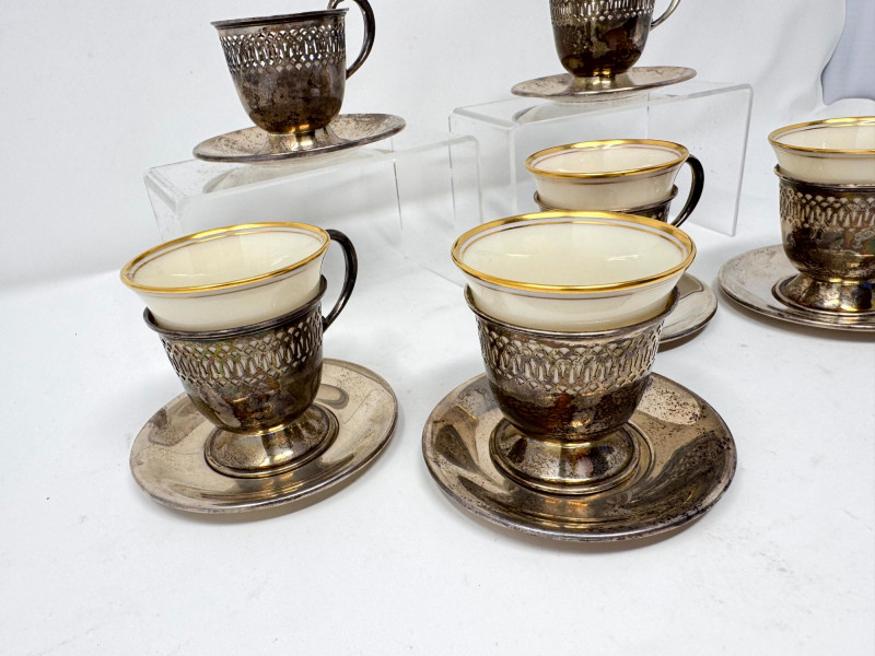 Lot # 25 - 6 Sterling Cup Holders & Saucers w/ 4 Lenox Demitasse Cups