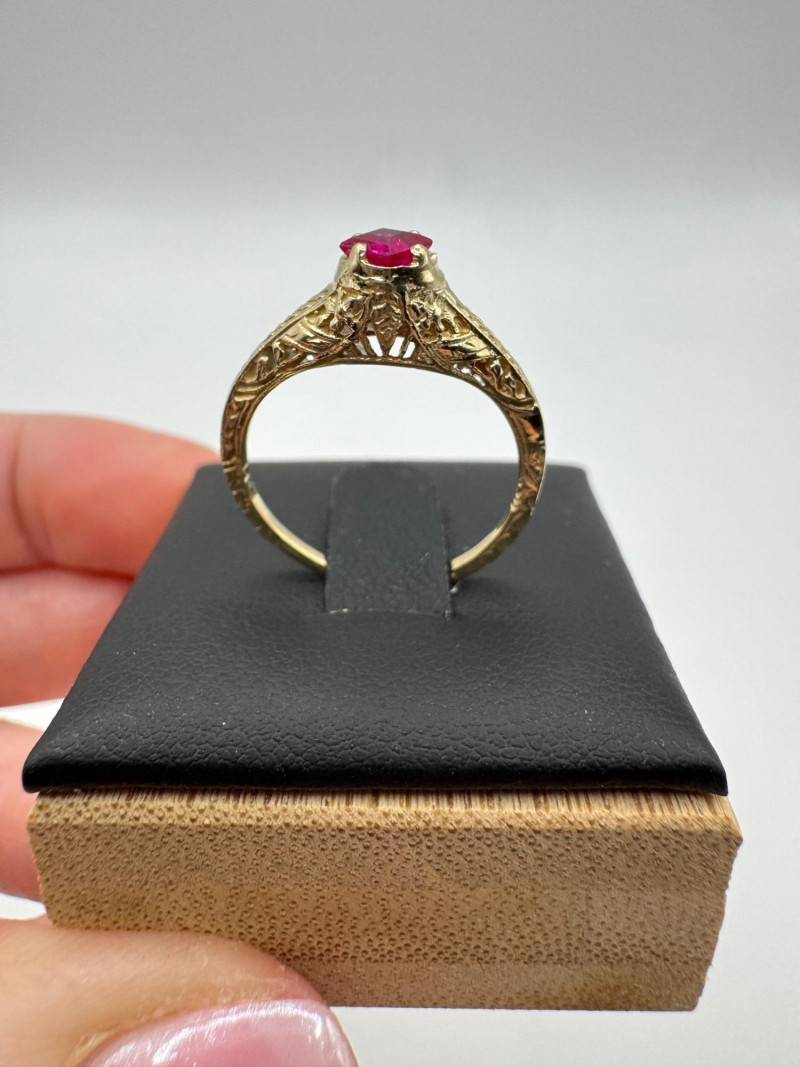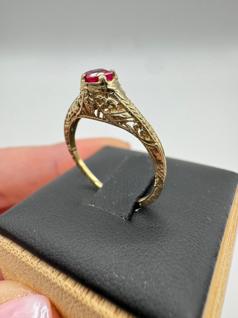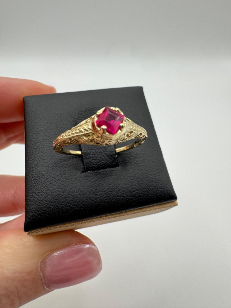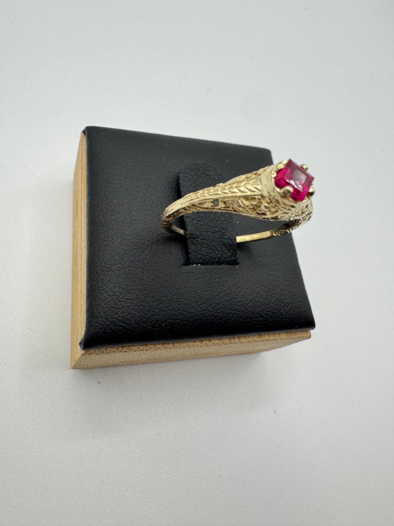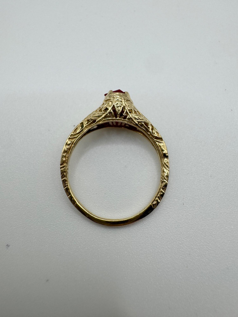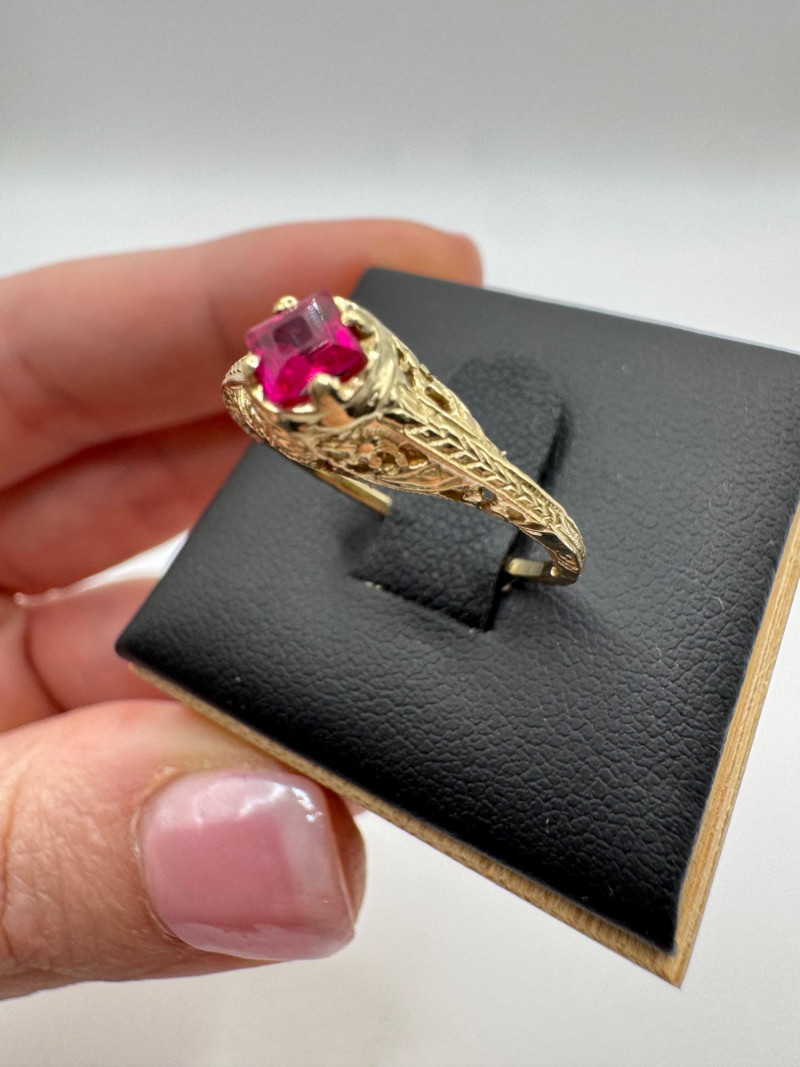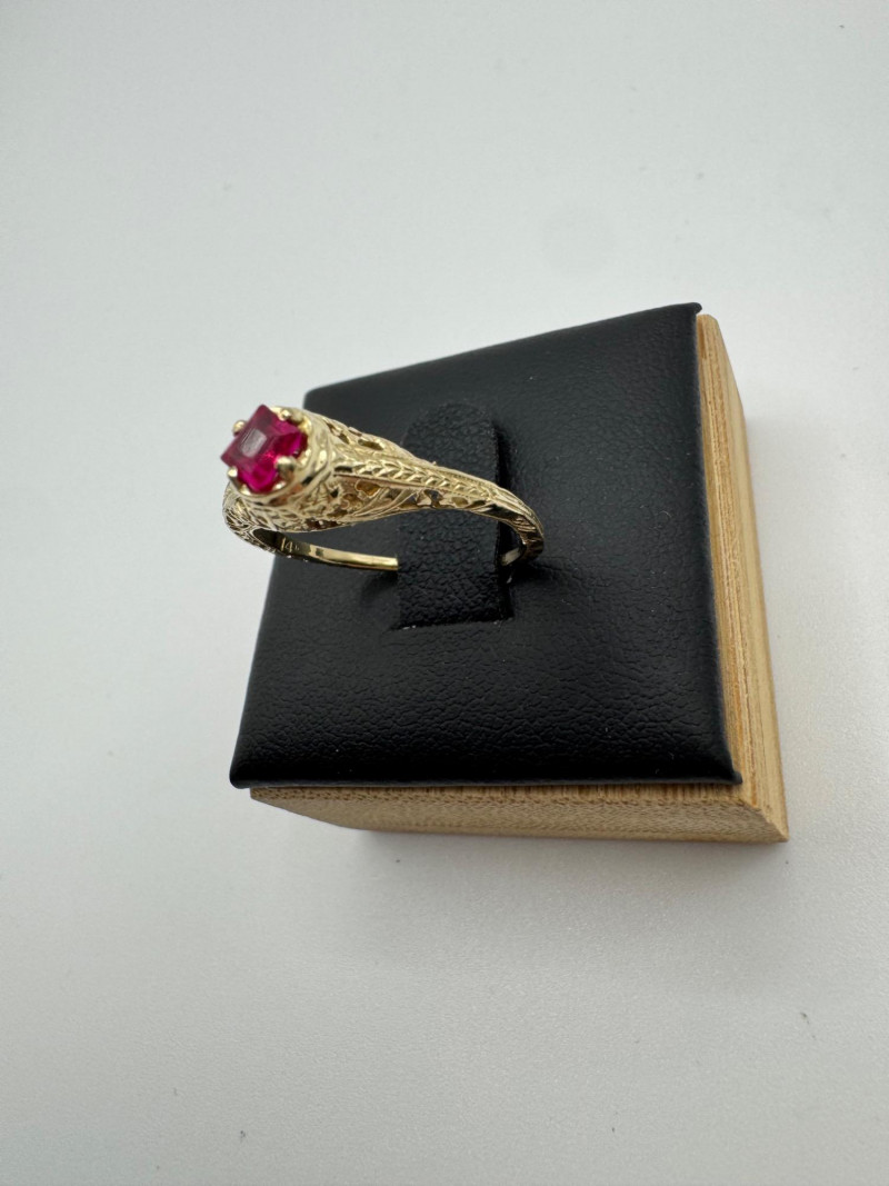 Lot # 26 - 14k Vintage Filigree Ring w/ Square-Cut Ruby Stone, 1.93g
