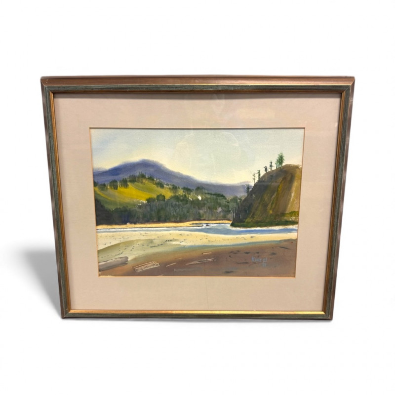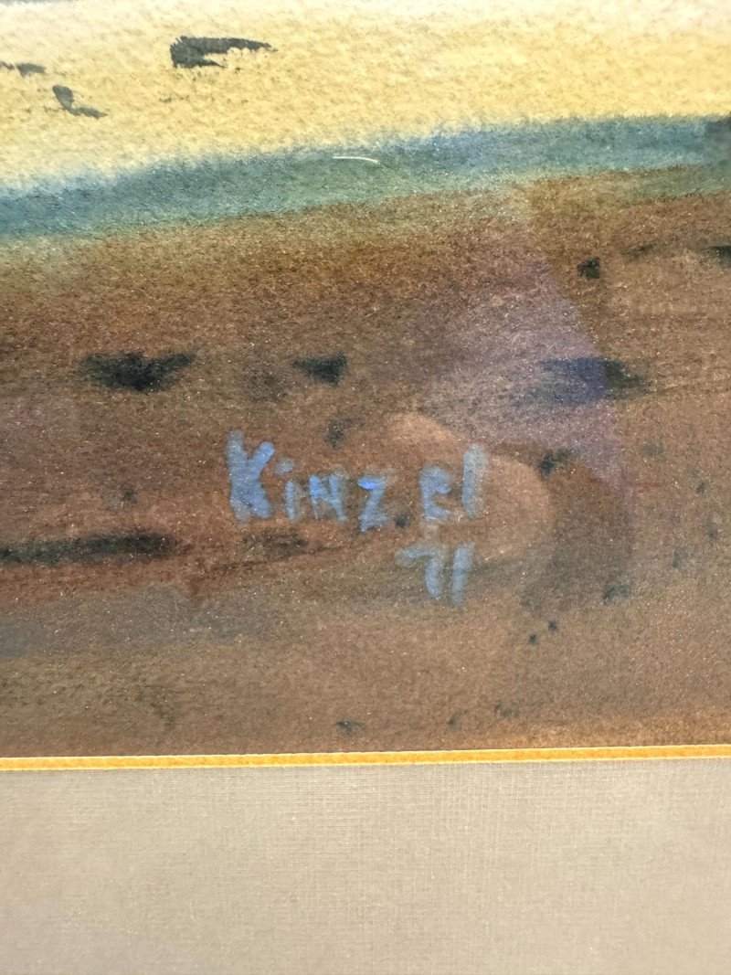 Kinzel 1971 Framed Watercolor Landscape Painting.
