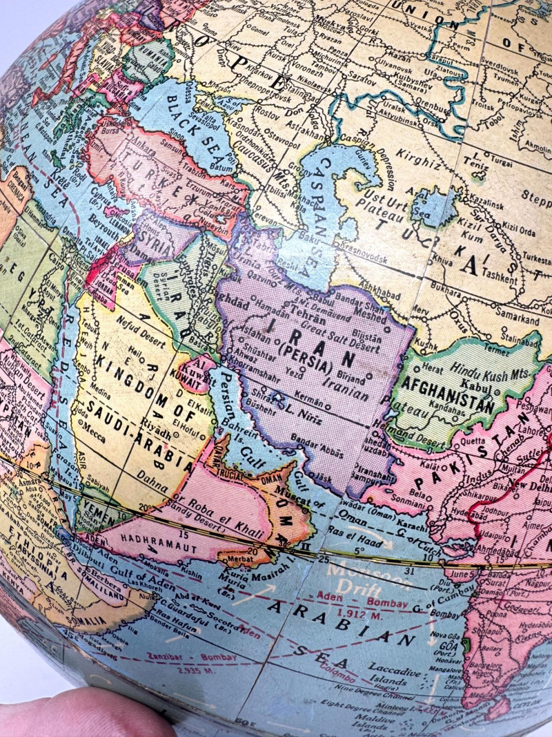 Vintage Political World Globe w/ USSR, Persian and More.
