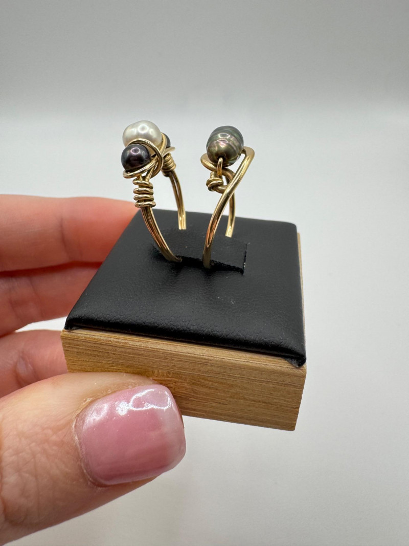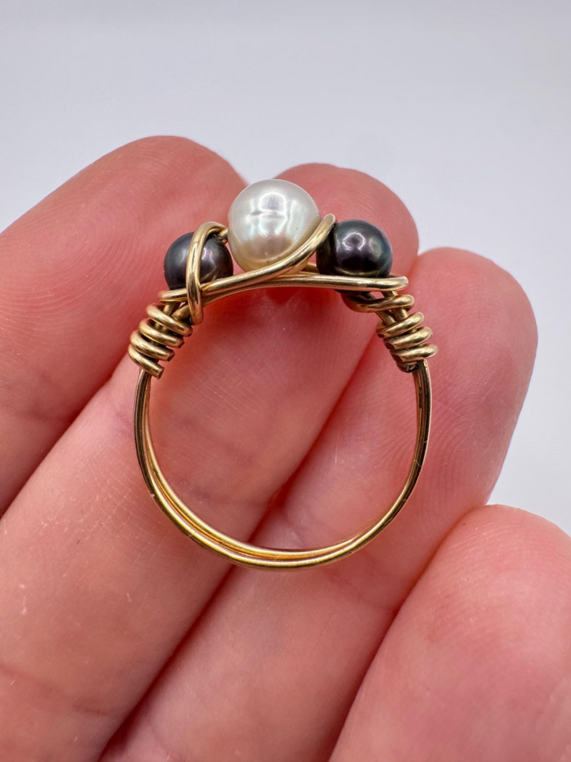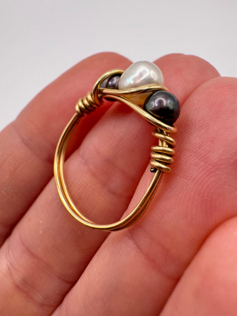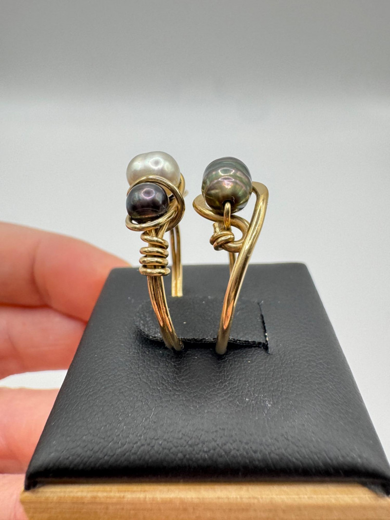 10k & 14k Gold Wire-Wrap Pearl Rings (2), Sizes 6.25 & 7, 3.06g.