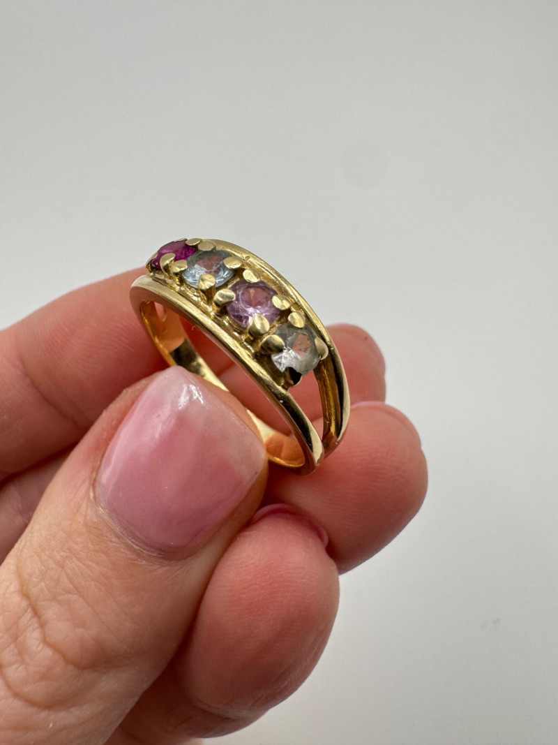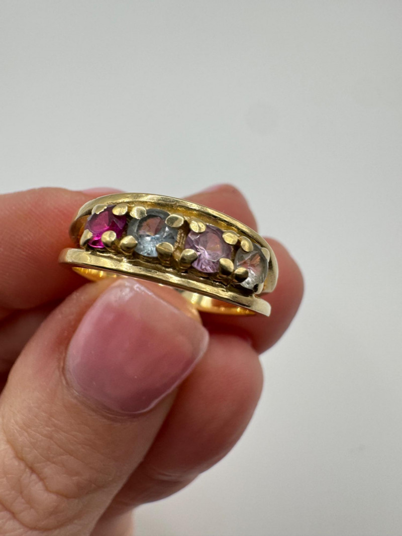 Lot # 36 - 14k Gold Lab Spinel Multi Birthstone Ring, Size 7.75 - 3.89g